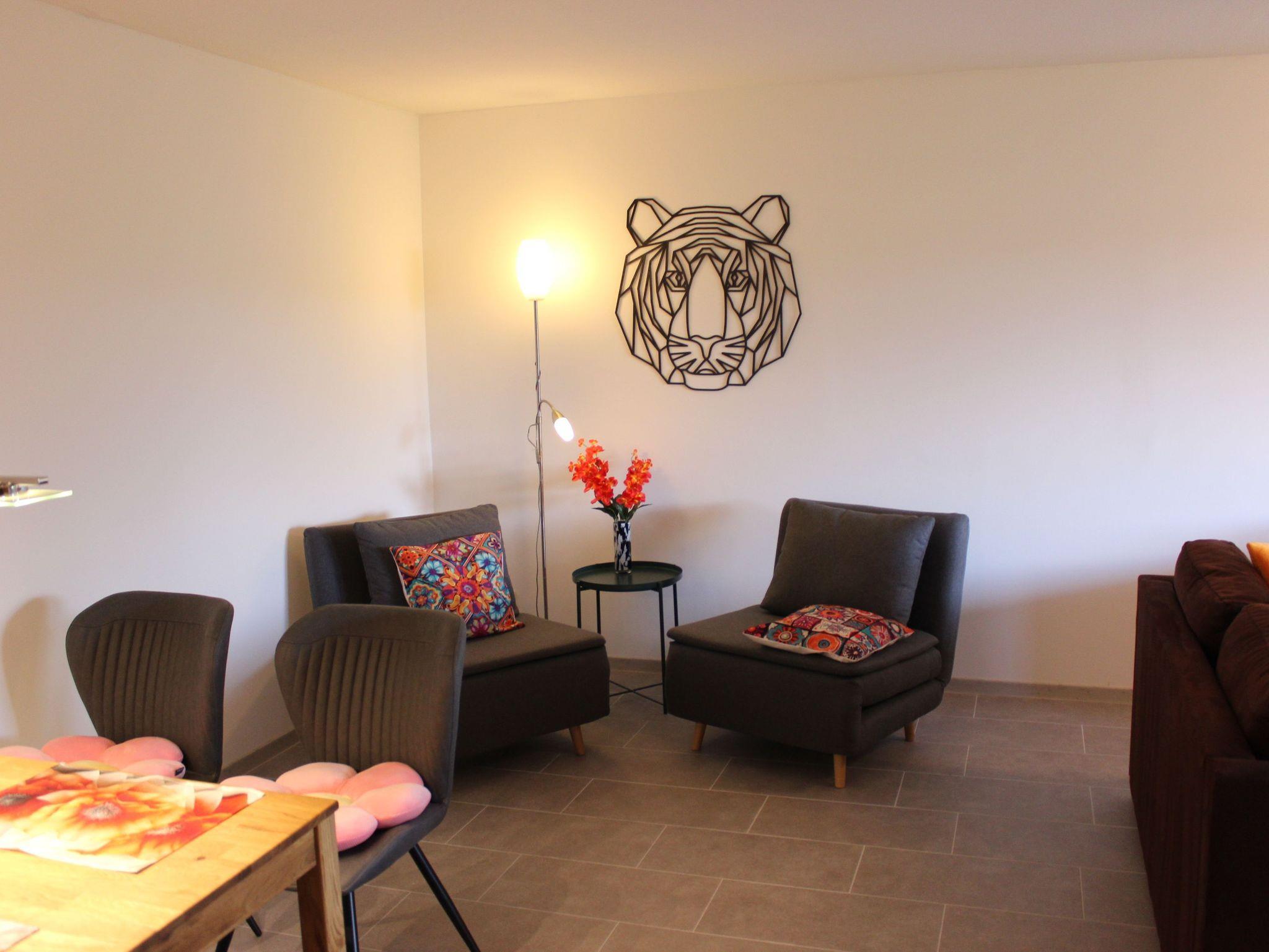 In unserer gemütlich eingerichteten FeWo-Garten finden Sie auf ca.70 qm großzügigen Platz für 2-4 Personen. Die Wohnung hat 1 Schlafzimmer mit 2 Einzelbetten die man je nach Bedarf auseinander stellen kann. Das Bad hat Dusche, WC, Bidet, Waschbecken und Föhn.