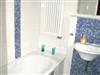 Sie sehnen sich nach Entspannung? Dann genießen Sie ein wohltuendes Vollbad in der gemütlichen Badewanne. Für die Anhänger der schnellen Wäsche steht eine Aufsatzwand zur Verfügung, die im Handumdrehen aus der Wanne eine Großraumdusche zaubert. Die ansprechende Fliesengestaltung in weiß und Blautönen erzeugt ein maritimes Flair, das Sie bereits bei der Morgentoilette erfrischen wird. Tageslicht versteht sich in diesem Bad von selbst.