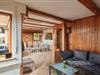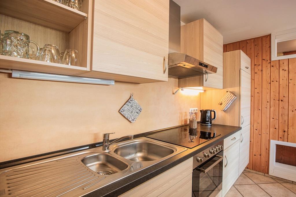 In der 1. Etage: (Wohnzimmer(Schlafcouch 1 Pers., TV), Esszimmer(Esstisch), Küche(Kochplatte, Wasserkocher, Toaster, Kaffeemaschine, Backofen, Kühlschrank), Schlafzimmer(Doppelbett), Badezimmer(Badewanne, Waschbecken)) In der 2. Etage: (Schlafzimmer(Doppelbett, Etagenbett), Schlafzimmer(Doppelbett, Etagenbett), Badezimmer(Dusche, Waschbecken))