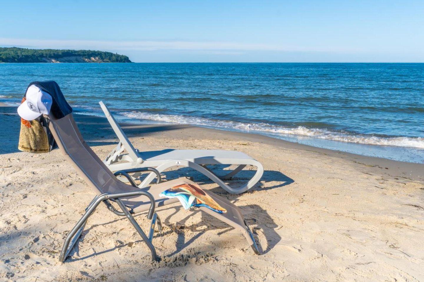 Modernes Appartement ODINs Blick mit Sauna und exklusiver Strandlage am Privatstrand in Lobbe.