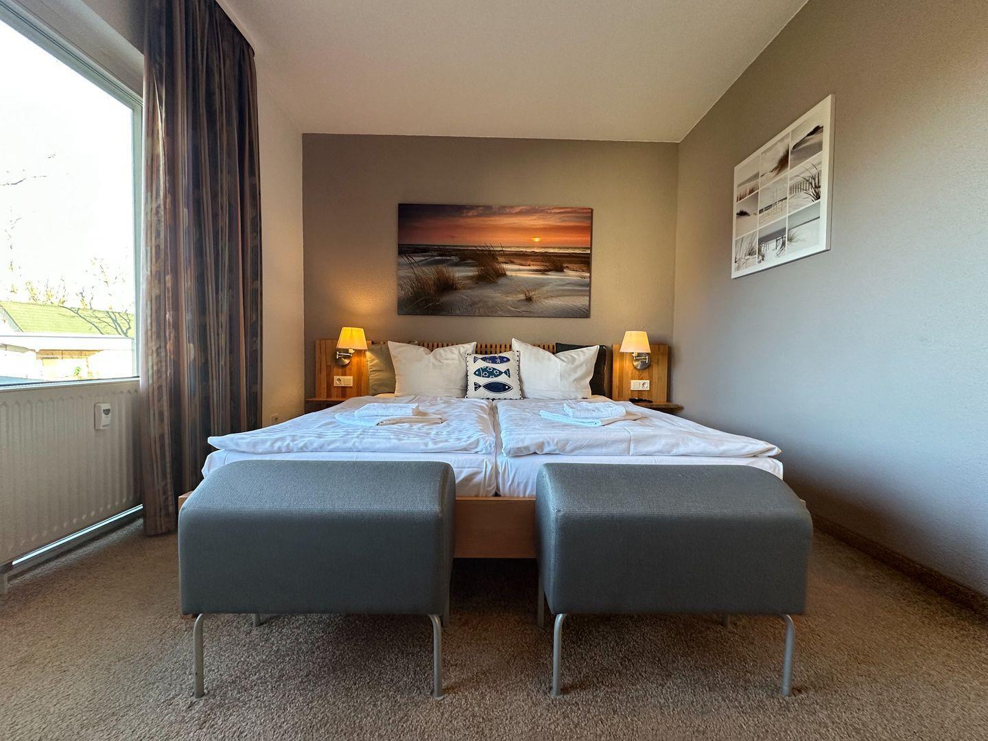Die Ferienwohnung befindet sich der strandnahe Appartementanlage Eldena im Fischerörtchen Lobbe.