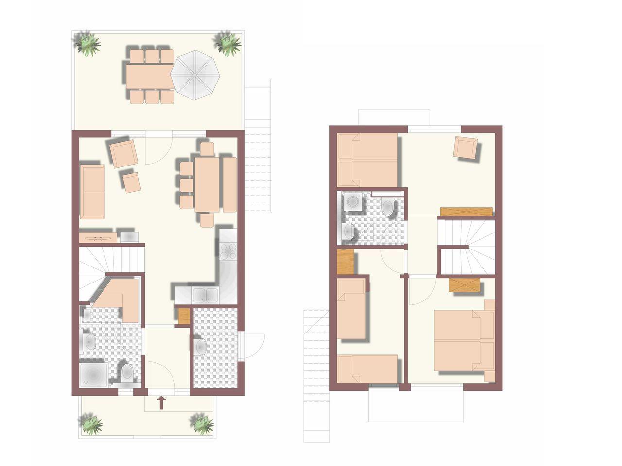 Für gemeinsame Stunden empfängt Sie im Erdgeschoss ein lichtdurchfluteter Wohn-/Essbereich mit offener Küche und einer gemütlichen Sitzecke für entspannte Momente nach einem sonnigen Strandausflug.