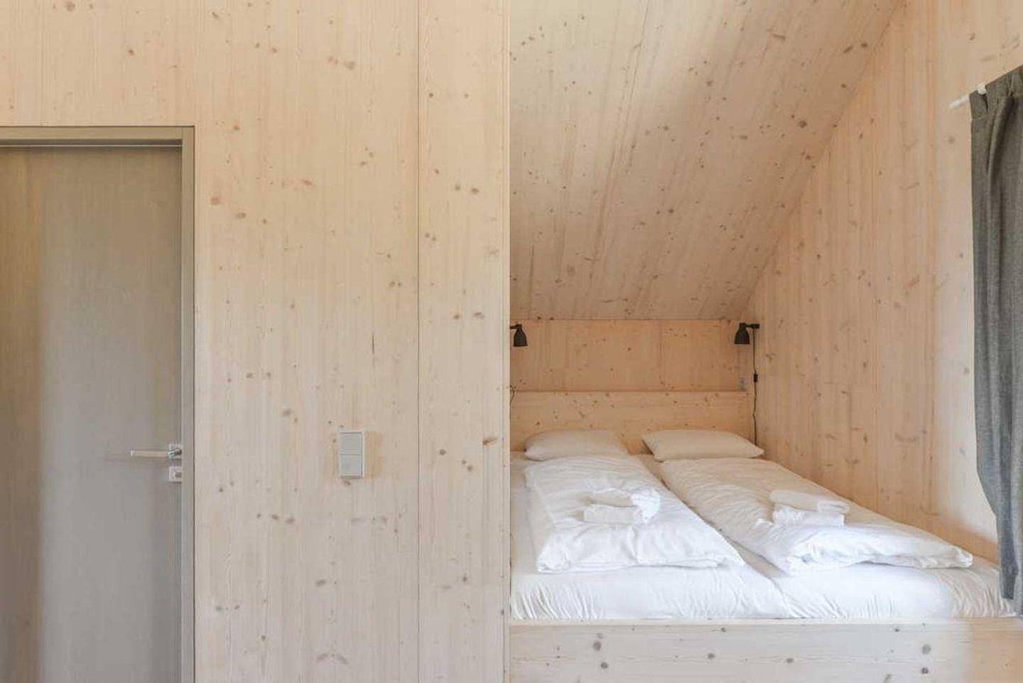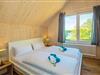 Im Dachgeschoss befinden sich zwei Schlafzimmer mit jeweils einem Doppelbett oder zwei Einzelbetten, von denen Sie den wunderschönen Blick zum Kölpinsee genießen. Im dritten Schlafzimmer finden Sie Erholung im gemütlichen Doppelbett, das in einer Schlafkoje verbaut wurde und in der zur Diele offenen Galerie einen Blick auf die grüne Umgebung bietet. Für einen weiteren Gast wird der komfortable Schlafsessel zu einem Einzelbett ausgeklappt.
