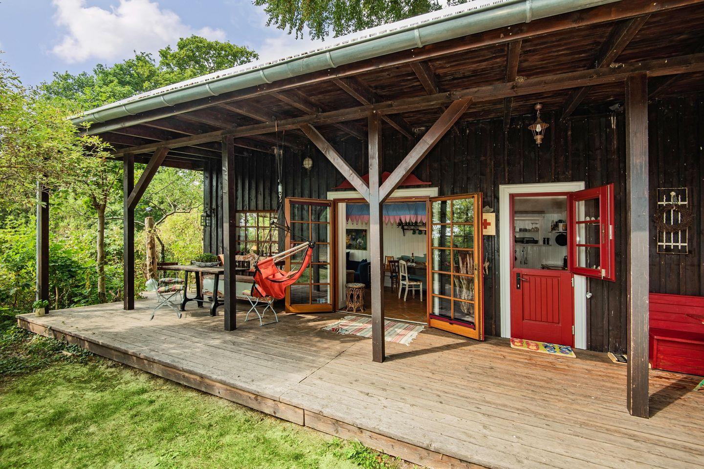 Gemütliches Ferienhaus "Kleiner Wagen" in Stubbenfelde mit Seeblick, Lehmofen und überdachter Terrasse für entspannte Tage.