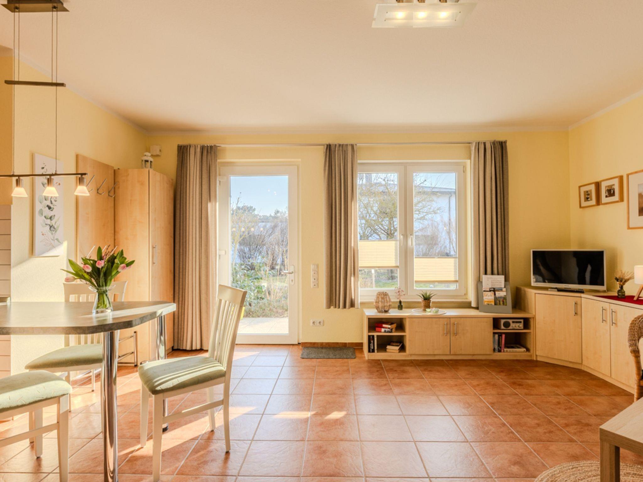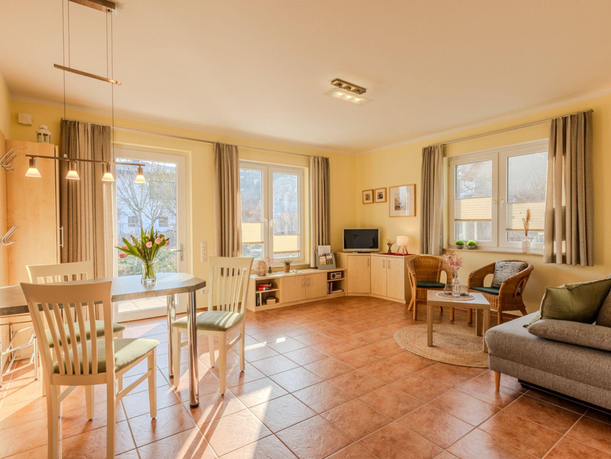Gemütliche Erdgeschosswohnung auf Usedom mit Terrasse, Gartenblick und barrierefreiem Komfort für entspannte Urlaubstage.