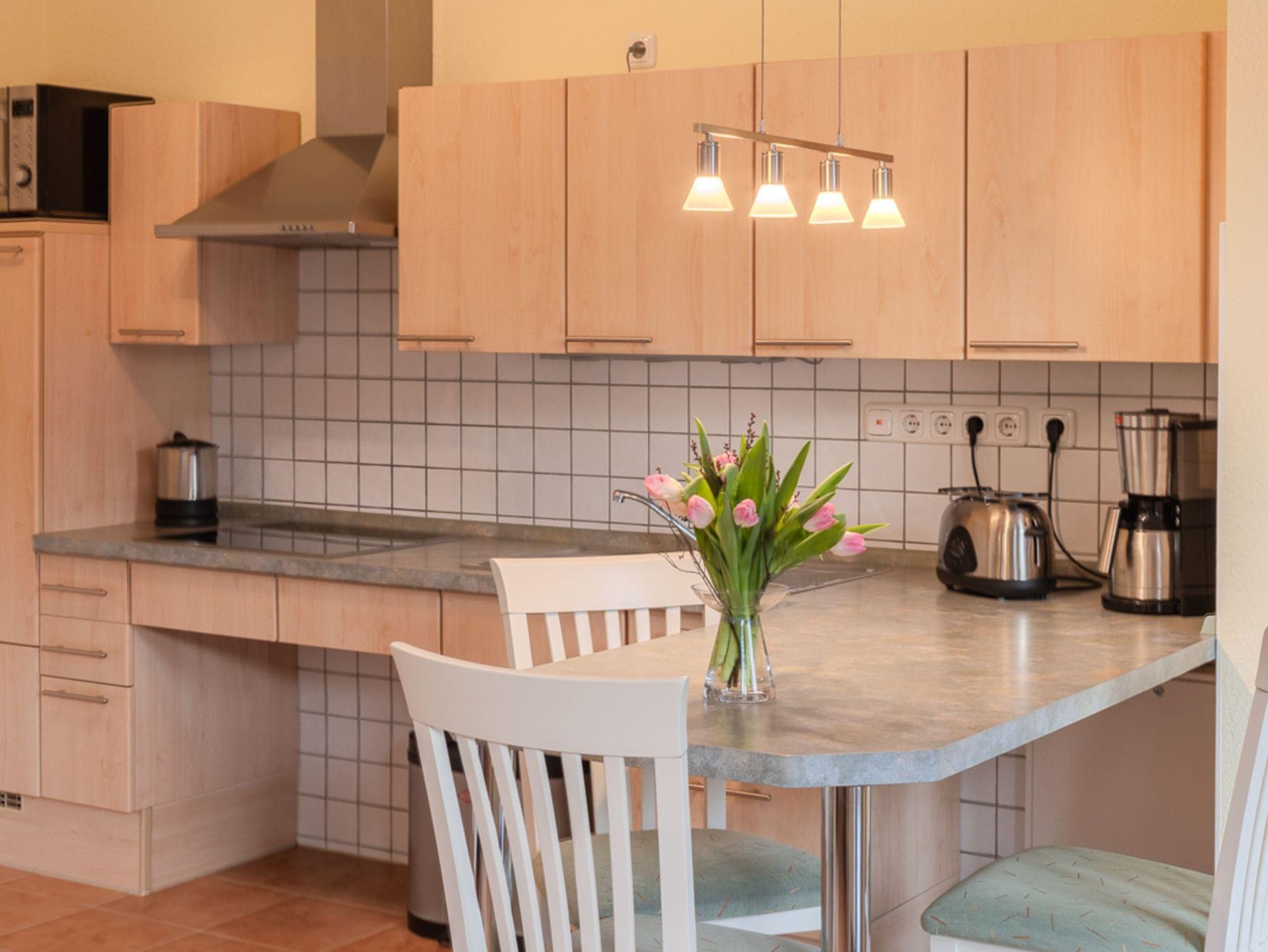 Damit Sie sich rundum wohlfühlen, ist die Erdgeschoss-Wohnung Paul mit viel Stauraum für Ihre persönlichen Dinge ausgestattet. Das gemütliche Duschbad ist mit seiner bodentiefen Dusche bequem begehbar. In der voll ausgestatteten Küche können Sie den Tag mit einem gemeinsamen Abendessen ausklingen lassen ? perfekt, um die Zweisamkeit zu genießen und den Tag ruhig ausklingen zu lassen.