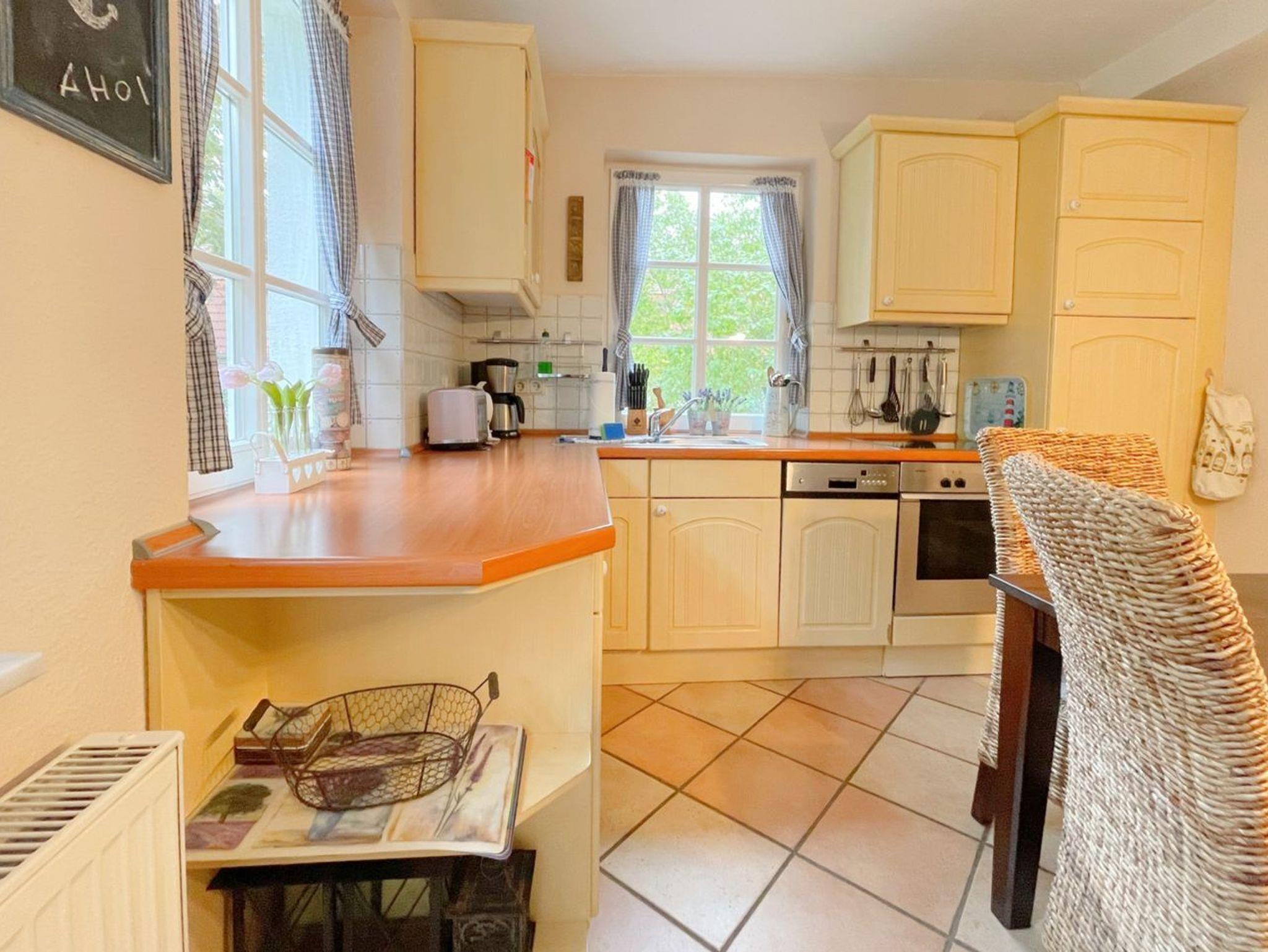 Die Ferienwohnung bietet auf großzügigen 65 m² Platz für bis zu vier Personen. Sie ist modern und geschmackvoll eingerichtet. Genießen Sie die Zeit in einem lichtdurchfluteten Wohnzimmer mit einer komfortablen Sofaecke, die zum Verweilen und Entspannen einlädt. Der offene Küchenbereich ist mit allen notwendigen Annehmlichkeiten ausgestattet, darunter ein Herd, ein Backofen, eine Geschirrspülmaschine und eine Kaffeemaschine. Hier können Sie gemeinsam köstliche Mahlzeiten zubereiten, während Sie den Blick auf den Garten genießen.