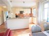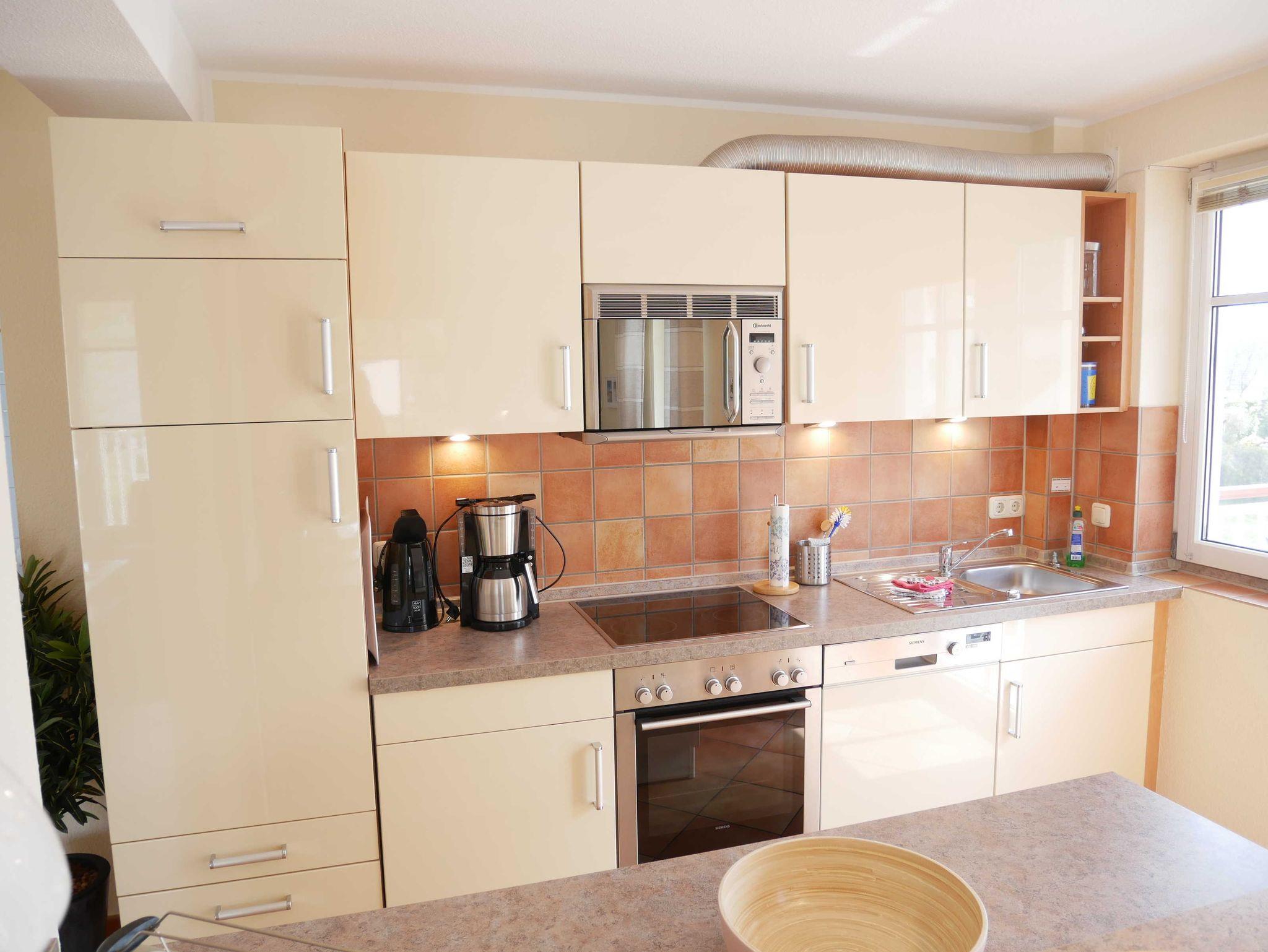 Die Wohnung verfügt über einen großzügigen Wohn- Essbereich mit offener, voll ausgestatteter Einbauküche welche über eine Kücheninsel, Kühlschrank mit Gefriermöglichkeit, Geschirrspülmaschine, Mikrowelle, Cerankochfeld, Backofen sowie Kaffeemaschine, Wasserkocher und Toaster verfügt. Der schöne Wohnbereich erwartet Sie mit einem Kamin, welcher gerade in der kalten Jashreszeit, für gemütliche Stunden sorgt sowie einer bequemen Couchecke, FLAT-TV und einem Esstisch.