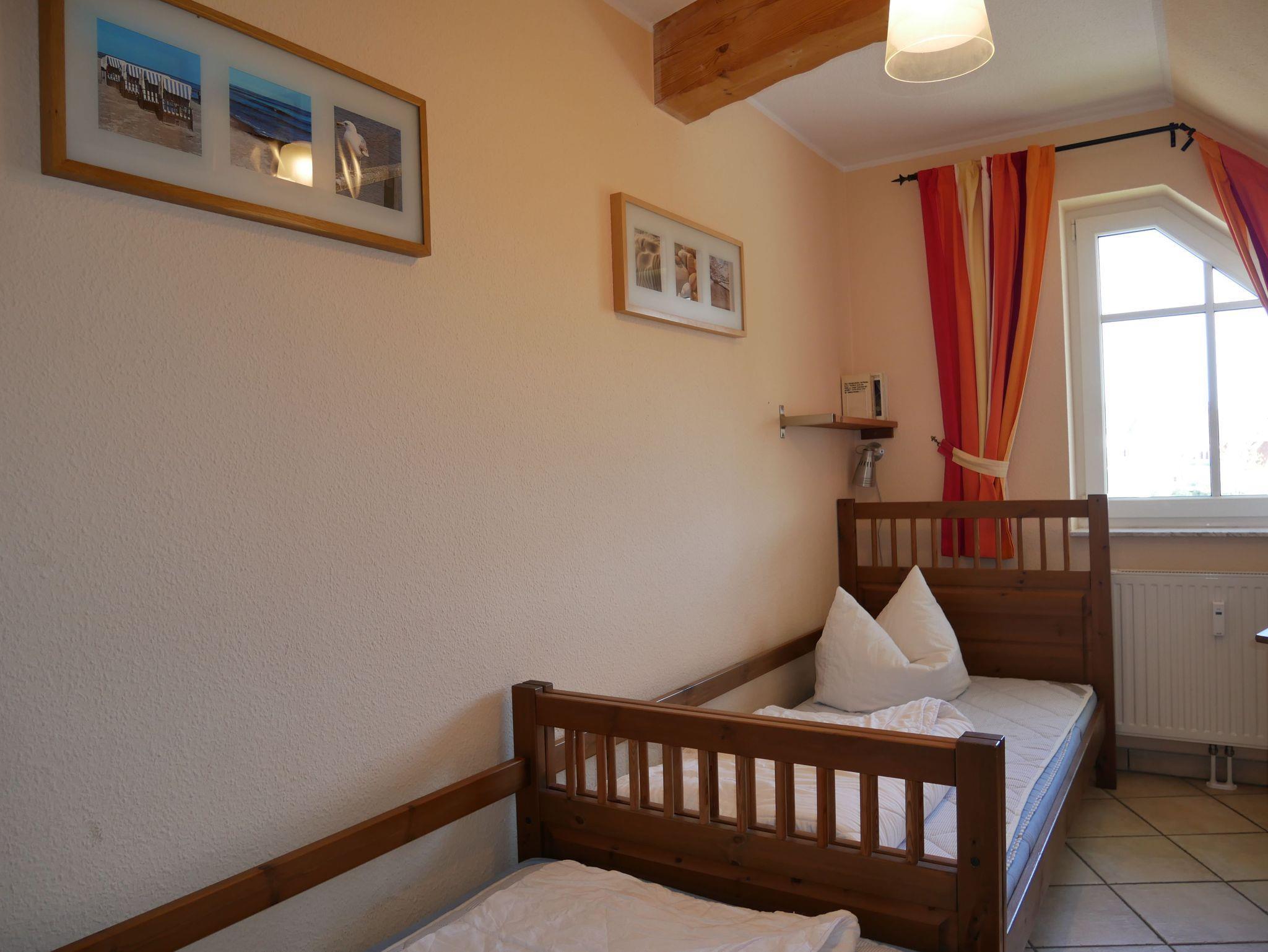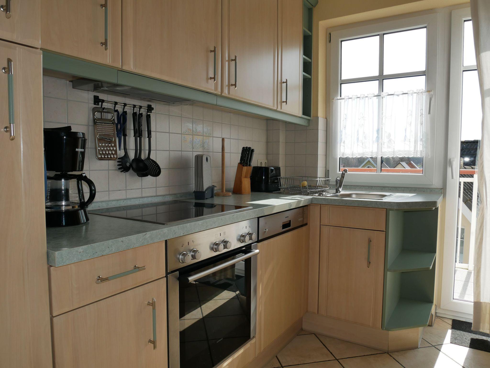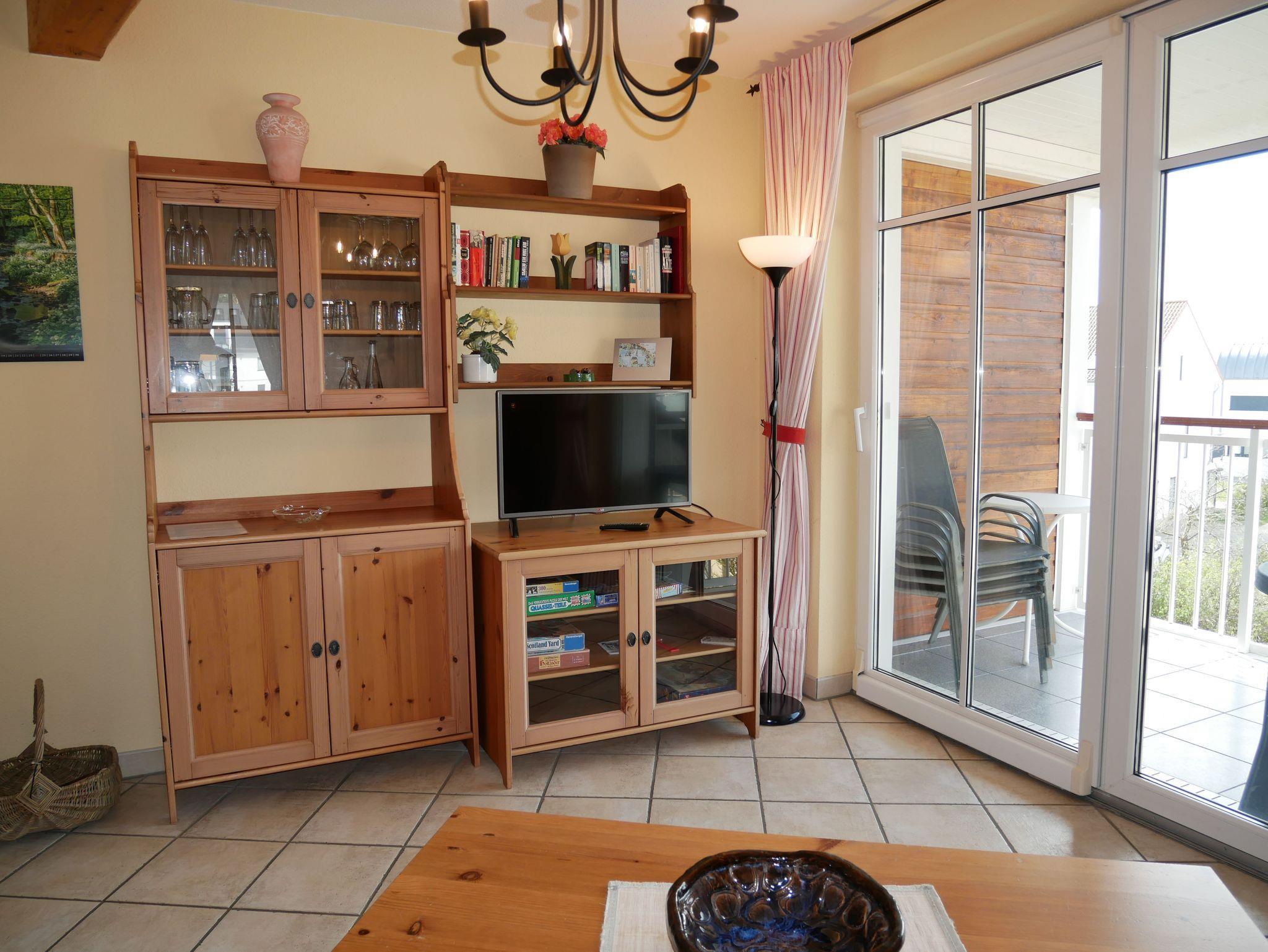 Die 65 qm große Ferienwohnung befindet sich im 2. Obergeschoss eines Mehrfamilienhauses. Das Wohnzimmer ist mit zwei gemütlichen Sofas, Flachbildfernseher und CD-Player ausgestattet. Ein Kamin lädt besonders in der kalten Jahreszeit zu gemütlichen Stunden ein. Die voll ausgestattete offene Einbauküche verfügt über eine Kücheninsel, Kühlschrank mit Gefriermöglichkeit, Geschirrspülmaschine, Mikrowelle, Koch- und Backofen. Ein Schlafzimmer ist mit einen Doppelbett und das zweite Schlafzimmer mit 2 Einzelbetten ausgestattet. Das Tageslichtbadezimmer verfügt über Dusche und WC.