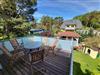 • Große Terrasse mit Sitzgarnitur mit Liegestühlen.
