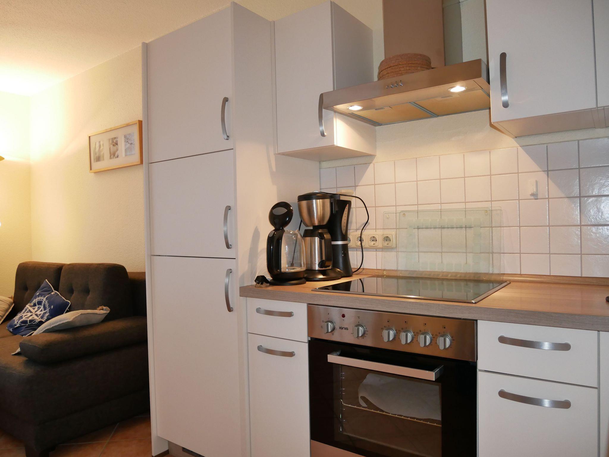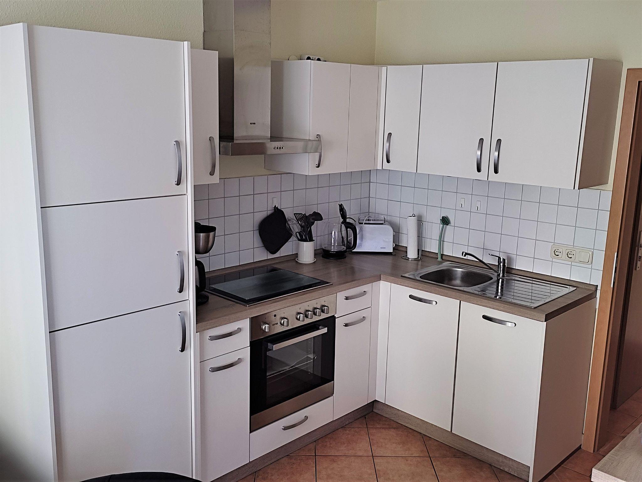 Die Wohnung ist komfortabel ausgestattet: Im Schlafzimmer finden Sie einen TV, im Wohnzimmer einen Smart-TV, eine Stereo-Anlage mit Radio und CD-Player. Die Küche ist voll ausgestattet mit einem 4-Platten-Cerankochfeld, Elektro-Ofen, Geschirrspüler, Kühl-/Gefrierschrank, Mikrowelle, Wasserkocher, Kaffeemaschine und Toaster. Für Ihre Wäsche steht eine Waschmaschine bereit.