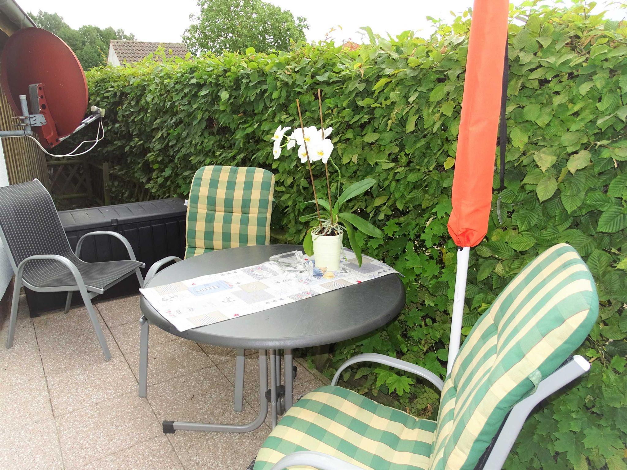 Auf der kleinen möblierten Terrasse können Sie gemütlich den Abend ausklingen lassen.