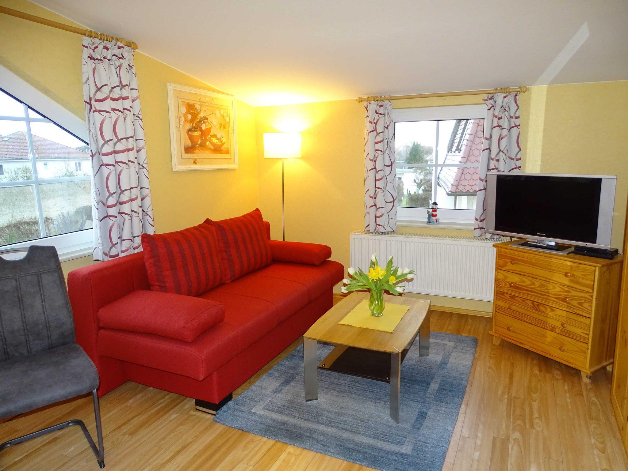 Die Ferienwohnung ist nur fünf Gehminuten vom Strand entfernt, ruhig gelegen und für zwei bis drei Personen geeignet. Im Erdgeschoß befinden sich das Wohnzimmer und die Küche, Schlafzimmer und Bad befinden sich im Obergeschoß. Die Erstausstattung Bettwäsche/Handtücher ist inklusive, Wäschewechsel möglich (5,00 €/ je Garnitur).