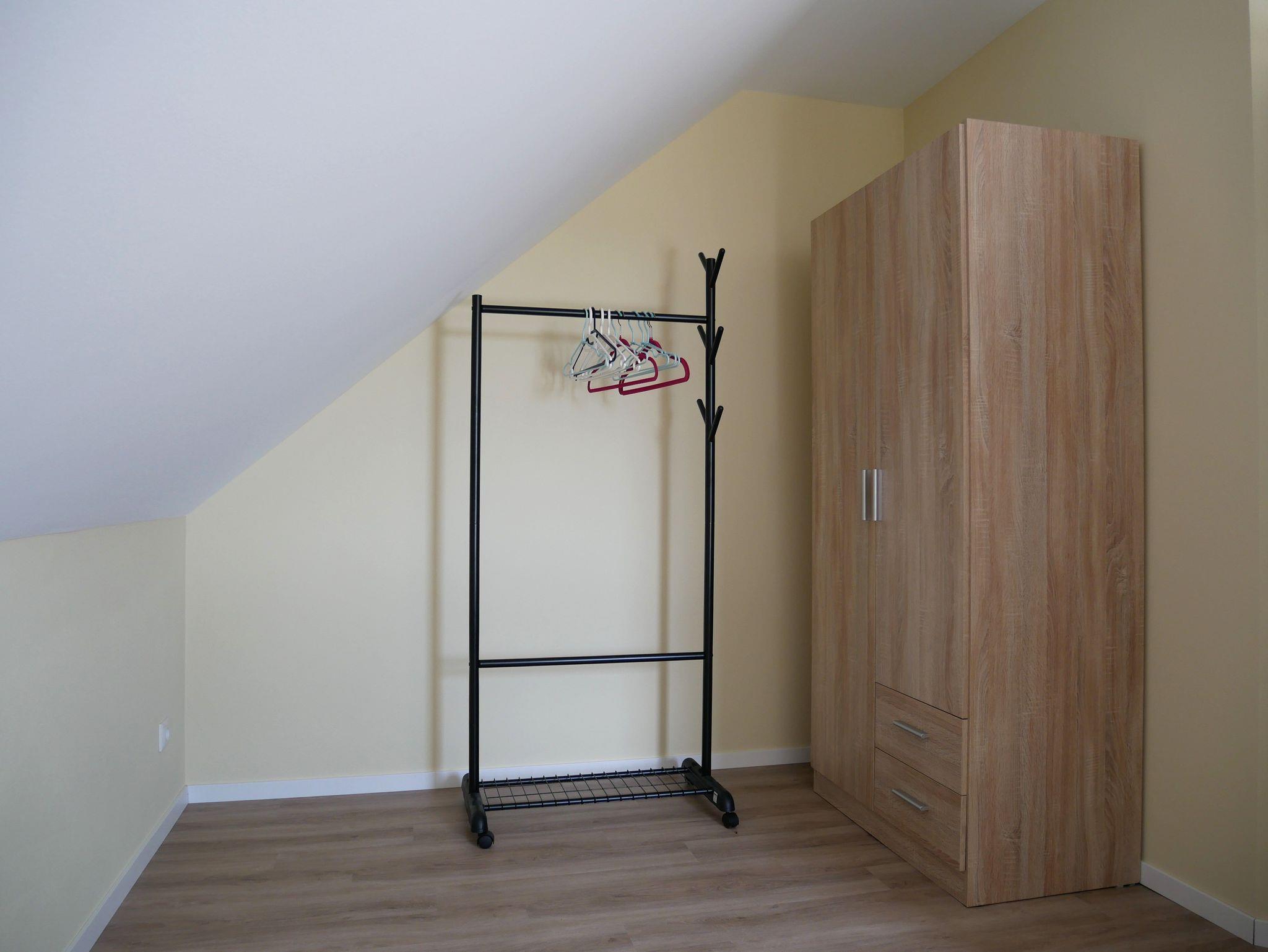 Über eine Treppe mit 15 Stufen gelangen Sie in das Obergeschoss, wo zwei separate Schlafzimmer auf Sie warten: Eines ist mit einem gemütlichen Doppelbett und einem geräumigen Kleiderschrank eingerichtet, das zweite verfügt über zwei Einzelbetten und ebenfalls einen Kleiderschrank. In beiden Schlafräumen sorgen Verdunklungsmöglichkeiten und Insektenschutz an den Fenstern für angenehme Ruhe und erholsamen Schlaf.