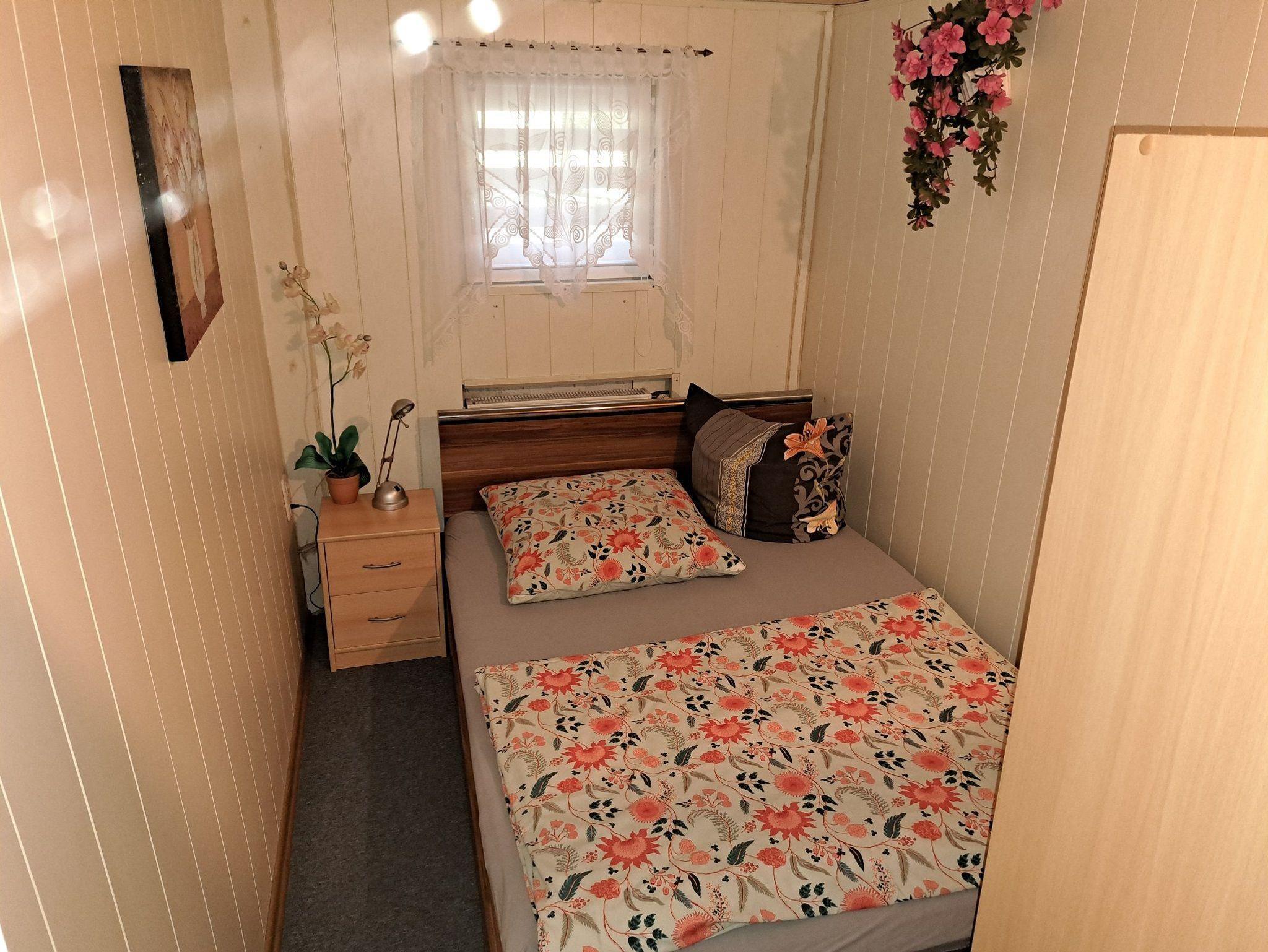 Die gemütlich eingerichtete Ferienwohnung befindet sich mit im Wohnhaus des Eigentümers. Sie verfügt über einen Wohnraum mit Couchecke und Flachbildfernseher, gemeinsam mit dem offenen Küchenbereich mit Essecke und Mini-Küche (Spülbecken, Kühlschrank und 2-Platten-Herd, Kaffeemaschine, Wasserkocher, Toaster, Geschirr, Besteck). Im Schlafzimmer steht ein gemütliches Bett (1,40 x 2,00 m) für eine Person. Das Bad ist mit Dusche und WC ausgestattet. Eine kleine Sitzecke befindet sich direkt am Eingang zur Ferienwohnung, genauso wie der PKW-Stellplatz.