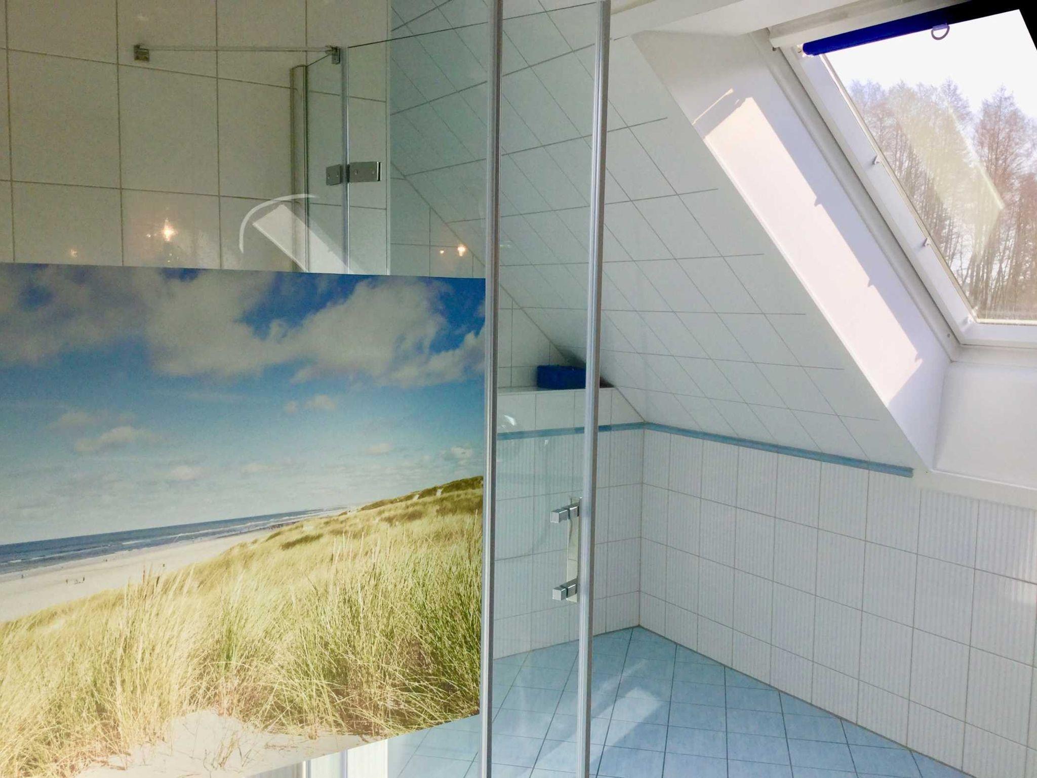 Im Badezimmer finden Sie eine geräumige Glasdusche und ein Handtuchtrockner für kuschelig warme Handtücher.