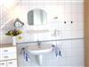 Ein Fön und beleuchteter Kosmetikspiegel sorgt für zusätzlichen Komfort.