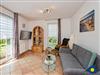 Dieses gemütliche 2-Raum-Appartement im Erdgeschoss der Villa Maria Gabrielle begrüßt Sie aufs Herzlichste. Der Wohnraum ist der Mittelpunkt des Appartements. Hier starten Sie mit einem ausgiebigen Frühstück in den Tag, planen Ausflüge, lassen den Abend mit einem Gläschen Wein vor dem Smart-TV ausklingen oder erholen sich von einem ereignisreichen Urlaubstag. Hier ist Platz für die Küchenzeile, dem großen Esstisch und einem bequemen Schlafsofa (Breite 1,50 m). Zudem erreichen Sie von hier aus die kleine Terrasse und den Garten des Hauses.