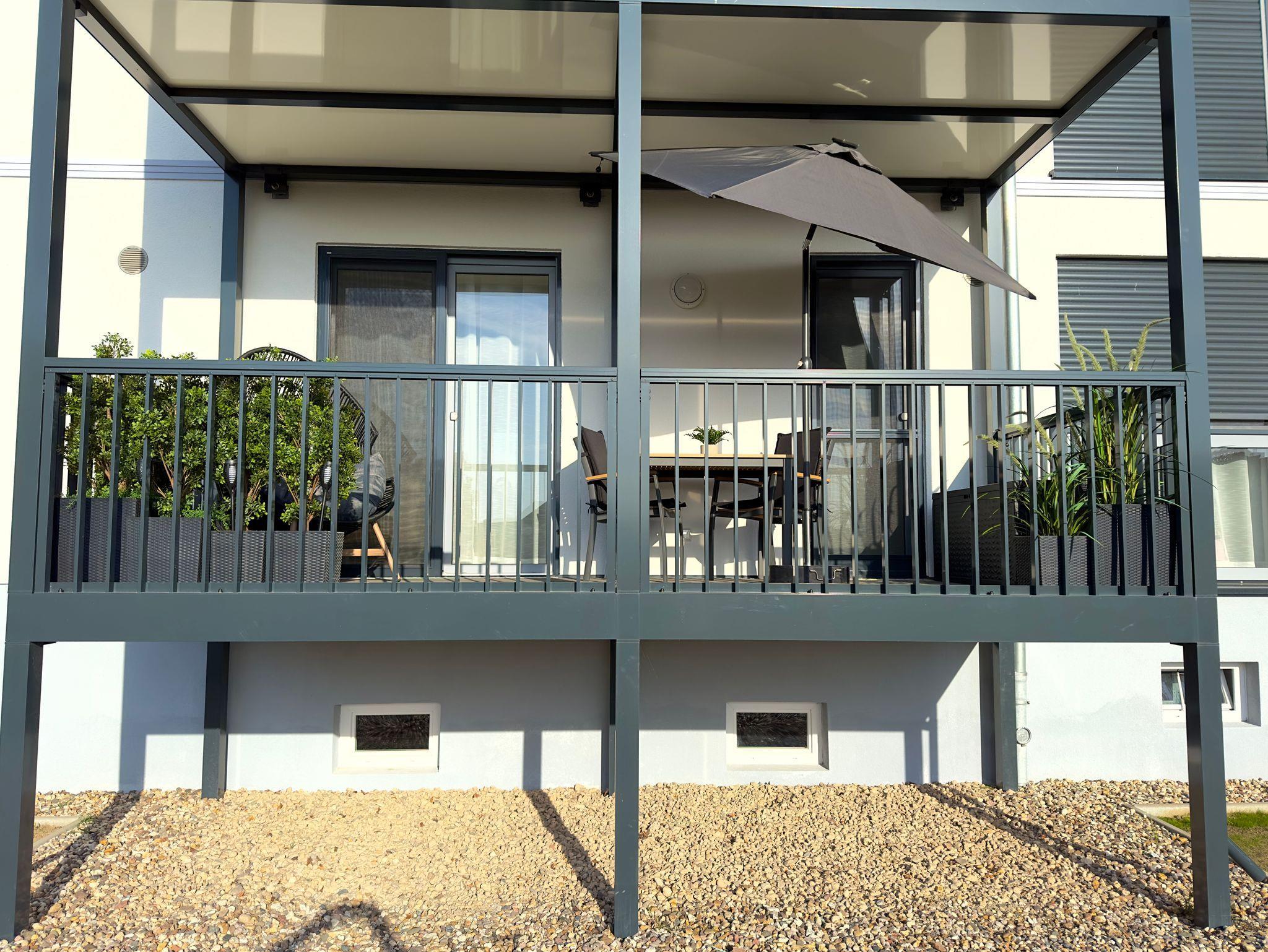 Lassen Sie sich morgens von der Sonne wecken und genießen Sie Ihr Frühstück auf dem 10 m² großen Balkon oder im Essbereich des Wohnzimmers.