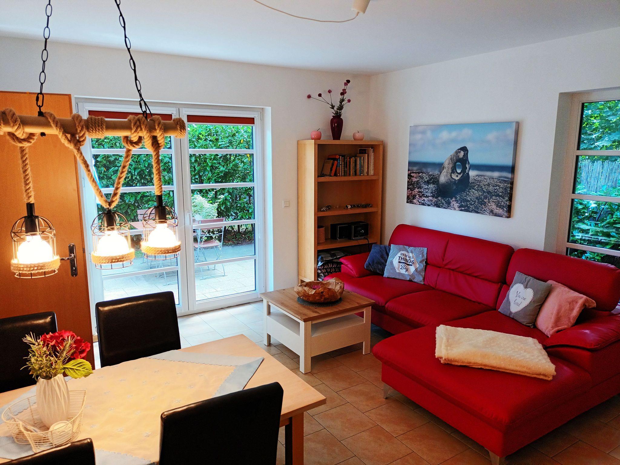 Die geschmackvoll eingerichtete Ferienwohnung Hühnergott [ ca. 60 qm ] in Waldrandlage und mit nur wenigen Gehminuten vom feinsandigen Ostseestrand entfernt befindet sich im Erdgeschoss eines Ferienhauses mit 2 Wohneinheiten.