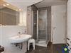 Das Badezimmer mit neuer begehbarer Dusche und Waschmaschine ist dank dem Fenster sehr hell.