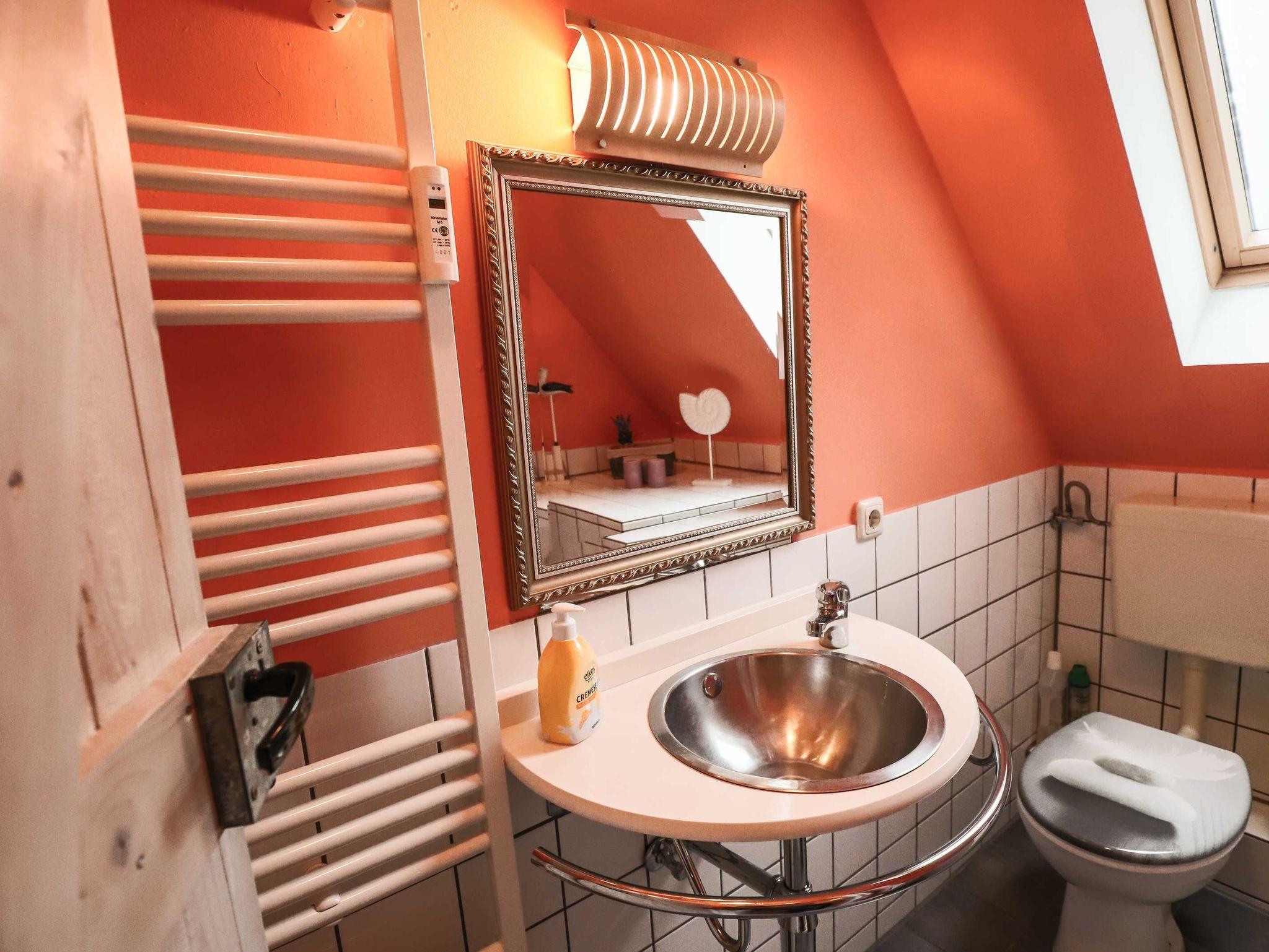 Im Obergeschoss finden Sie die beiden Schlafzimmer mit je einem Doppelbett (1,60 x 2,00 m) und (1,80 x 2,00 m) mit Möbeln im skandinavischen Stil, sowie das Badezimmer mit Dusche und Wc. Letzte Sanierung des Ferienhauses erfolgte 2024. WLAN erhalten sie von uns gratis.