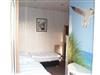 Die 2-Raum-Ferienwohnung liegt im Hochparterre des Hauses Anneliese und verfügt über einen separaten Eingang über die Veranda. Die Veranda mit großen Panoramafenstern ermöglicht einen wunderschönen Blick auf die Ostsee. Darin stehen eine gemütliche Couchsitzgruppe und ein Esstisch mit 4 Stühlen sowie ein Flat- TV und ein Radio mit CD-Player zur Verfügung. Die offene Küchenzeile ist mit einem 2 Plattenherd, Kühlschrank mit Gefrierfach, Spüle, Kaffeemaschine, Wasserkocher und Toaster ausgestattet, außerdem wird Ihnen Fit, Schwamm, Spültuch und Geschirrhandtuch zur Verfügung gestellt. Das erste der zwei Schlafzimmer ist mit einem Doppelbett und einem Kleiderschrank eingerichtet, das zweite Schlafzimmer mit zwei Einzelbetten(ideal für Kinder) Das Badezimmer vergfügt über Dusche/WC und Haartrockner.