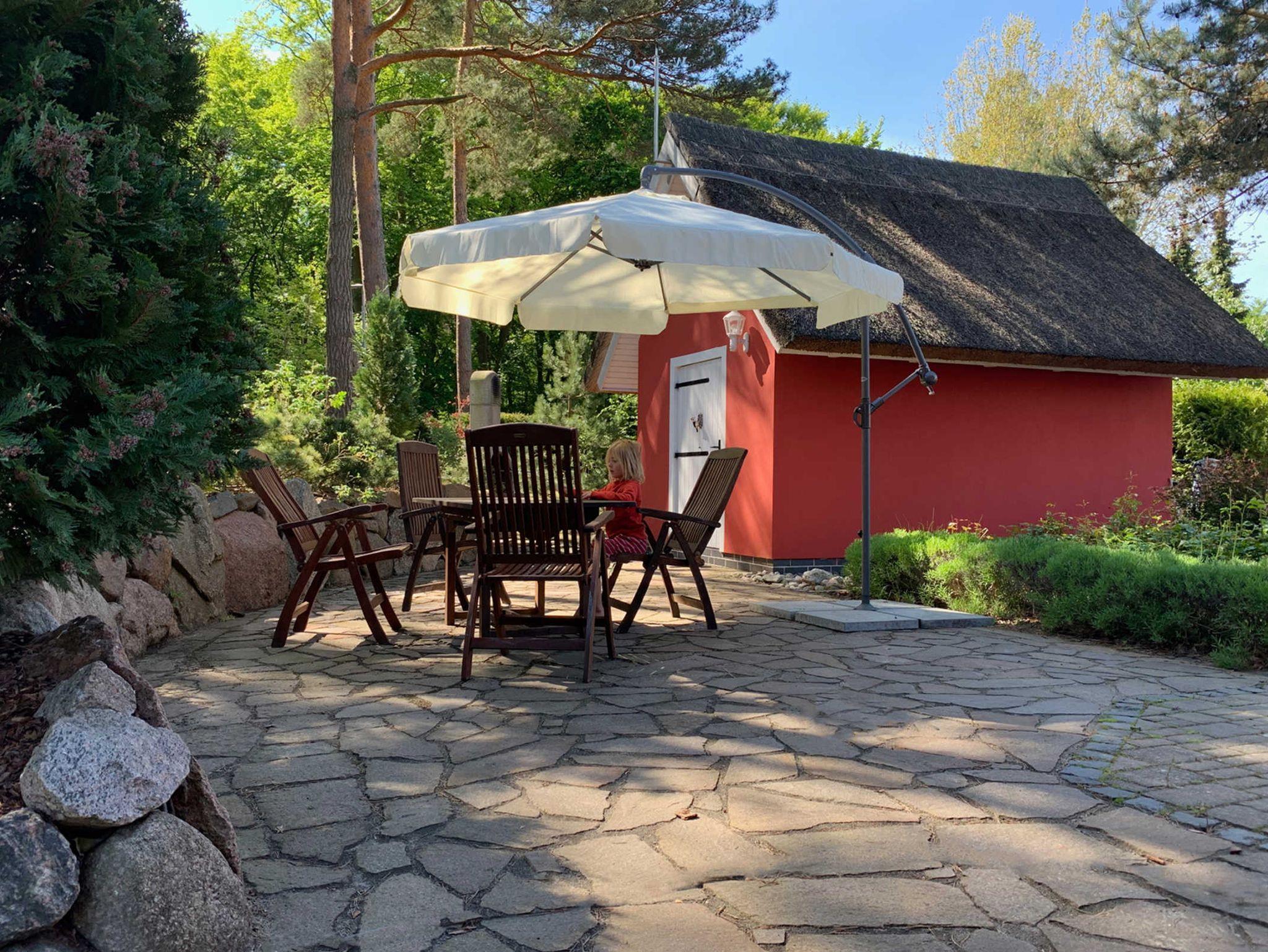 Das gemütliche, reetgedeckte Ferienhaus bietet auf 130 qm komfortablen Platz für 6 Personen. Das Haus verfügt über 2 Doppelbettschlafzimmer, 2 Zimmer mit Einzelbetten die zum Doppelbett ausziehbar sind, 2 Bäder, einen großen Garten mit 2 Terrassen (ein davon überdacht), Gartenhaussauna und Trampolin. Im großzügigen Wohn- und Essbereich bietet ein Kachelofen kuschelige Wohlfühlatmosphäre. Die Küche ist ausgestattet mit Cerankochfeld, Backrohr, Geschirrspüler, Kühlschrank, Kaffeemaschine, im Haus gibt es eine Waschmaschine, Kabelfernsehen, 3 Fernseher und W-lan, der Garten verfügt über Gartenmöbel und Liegen, Strandkorb, Grillplatz. Direkte Nähe zu Strand und Wald, sehr gute Infrastruktur, alle Einkaufsmöglichkeiten sind in der Nähe, gute Anbindung an die Bäderbahn. Parkplatz am Haus.