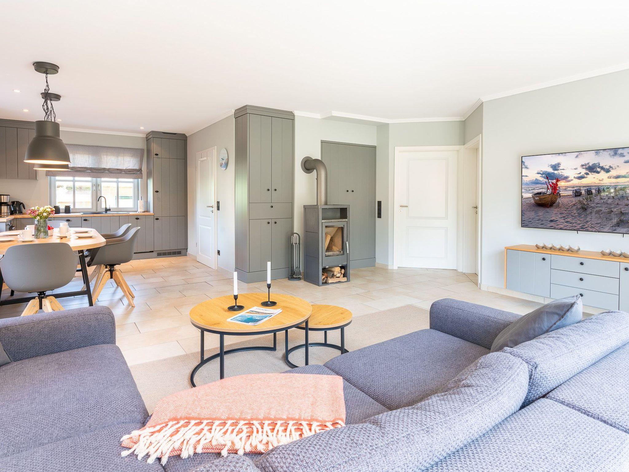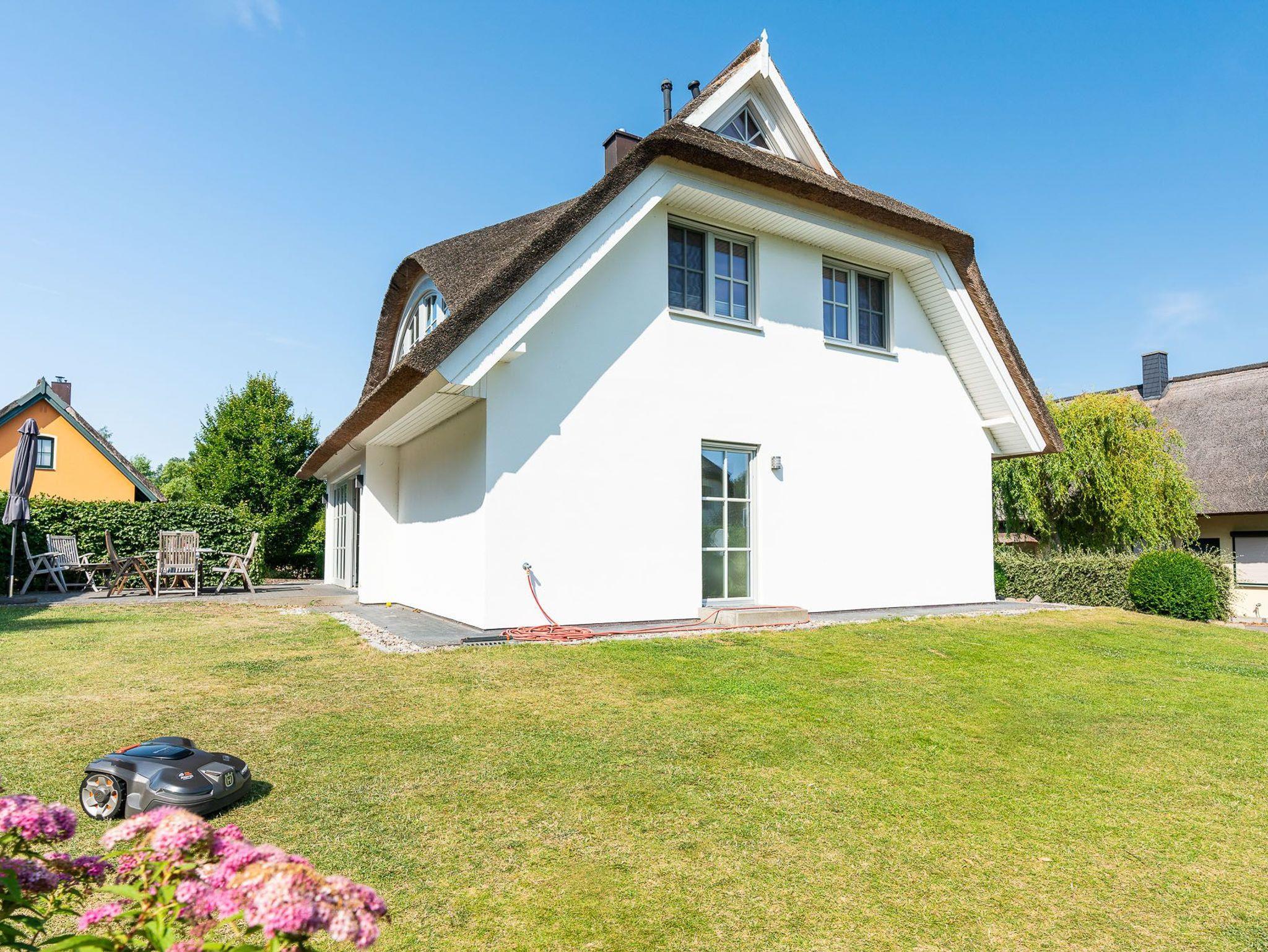 Modernes reetgedecktes Ferienhaus nahe Strand und Wald auf Usedom mit Sauna und Kamin für erholsamen Urlaub.