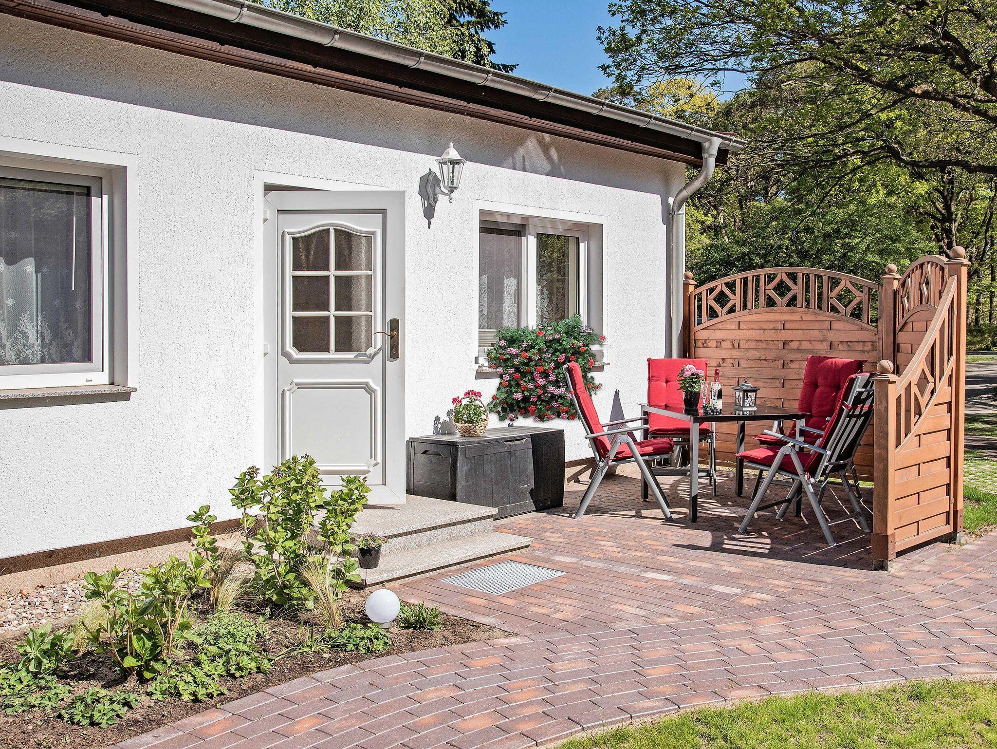 Gemütlicher Bungalow mit Terrasse nahe feinsandigem Ostseestrand und Wald, ideal für Familien mit Haustieren.