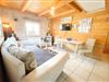 Im Wohnzimmer erwartet Sie ein digitales TV-Gerät mit Blu-ray-Player und eine gemütliche Sofaecke zum Entspannen. Der offene Essbereich grenzt direkt an die Küche, die mit Elektroherd (2-Platten), Backofen, Kühlschrank mit Gefrierfach, Mikrowelle, Wasserkocher, Kaffeemaschine, Toaster sowie umfangreichen Küchenutensilien ausgestattet ist. Für gemeinsamen Genuss stehen ein Esstisch und ausreichend Geschirr zur Verfügung. Ein Ganzkörperspiegel, Kommode, Garderobe und Staubsauger runden die umfassende Ausstattung ab.