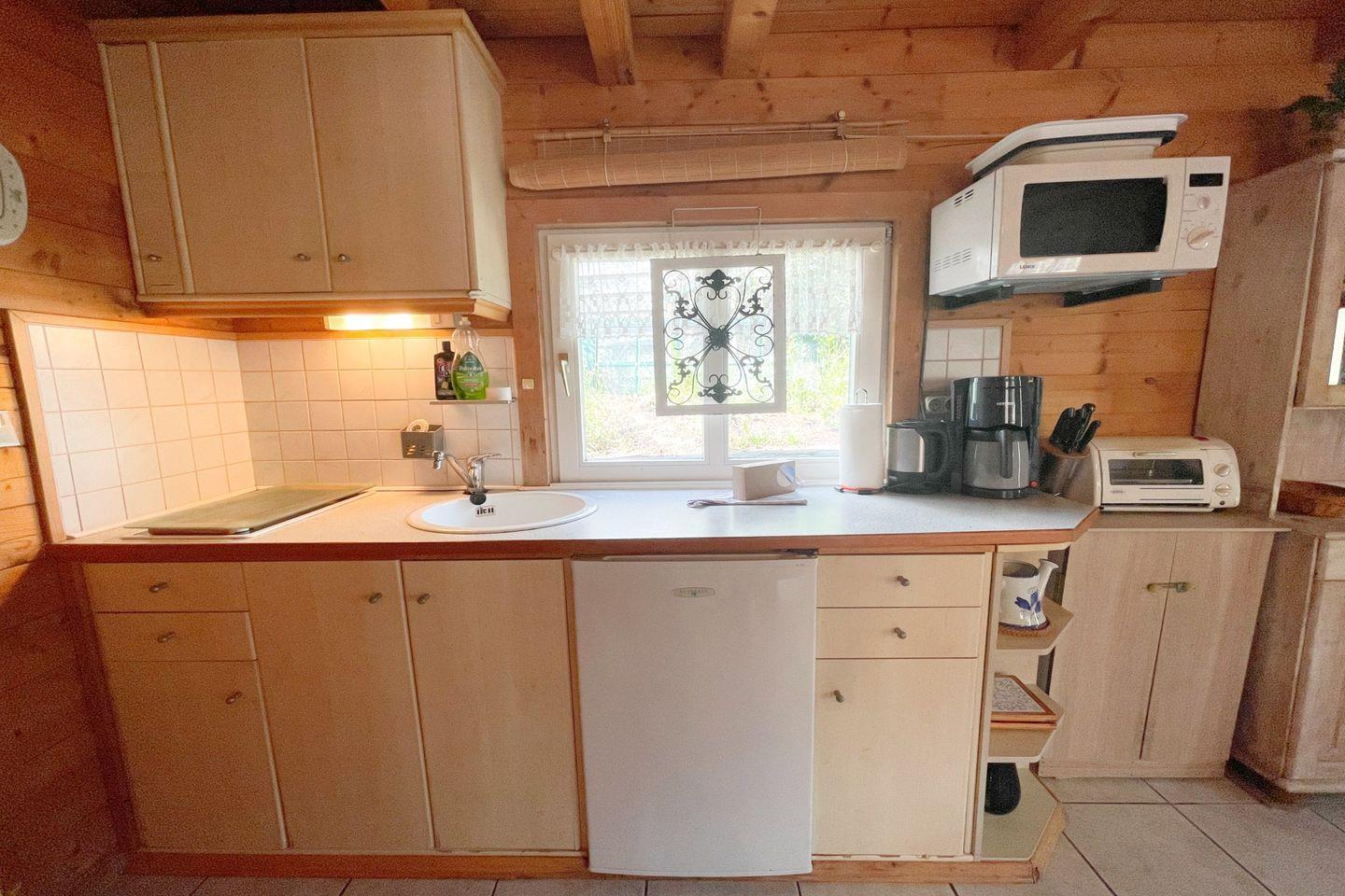 Das freistehende Ferienhaus Usedom Idyll in Loddin bietet auf 35 m² ein Schlafzimmer, einen gemütlichen Wohnbereich mit offener Küche, moderne Ausstattung sowie Terrasse mit außergewöhnlich gutem Seeblick, Garten und kostenlosem Parkplatz. WLAN, Fernseher, Bettwäsche, Handtücher und ein Bad mit Dusche sind vorhanden. Haustiere sind nach Absprache willkommen.