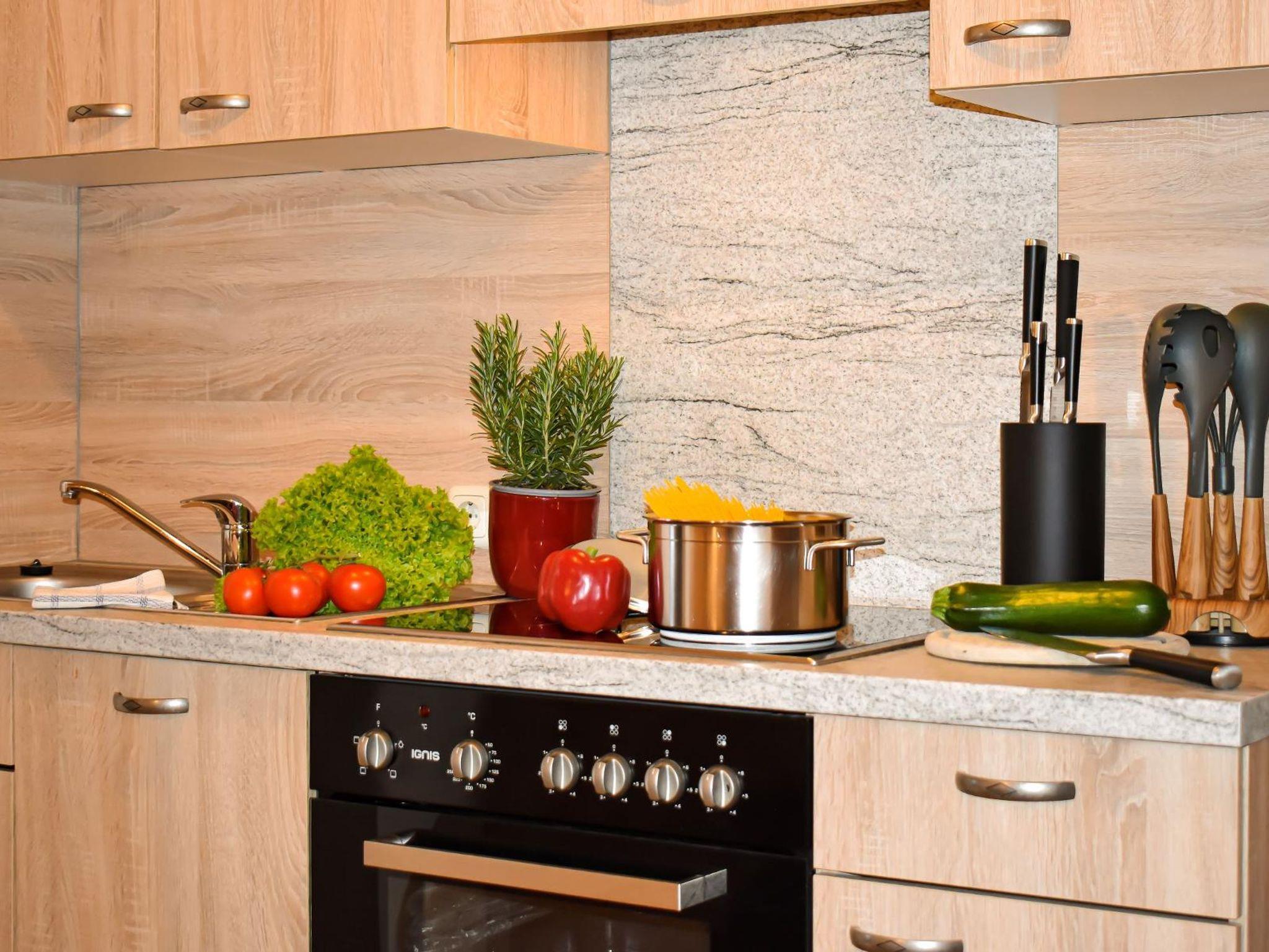 Vollausgestattete Küche mit Spülmaschine, Kühlschrank mit Gefrierfach, E-Herd mit Backofen, Kaffee-