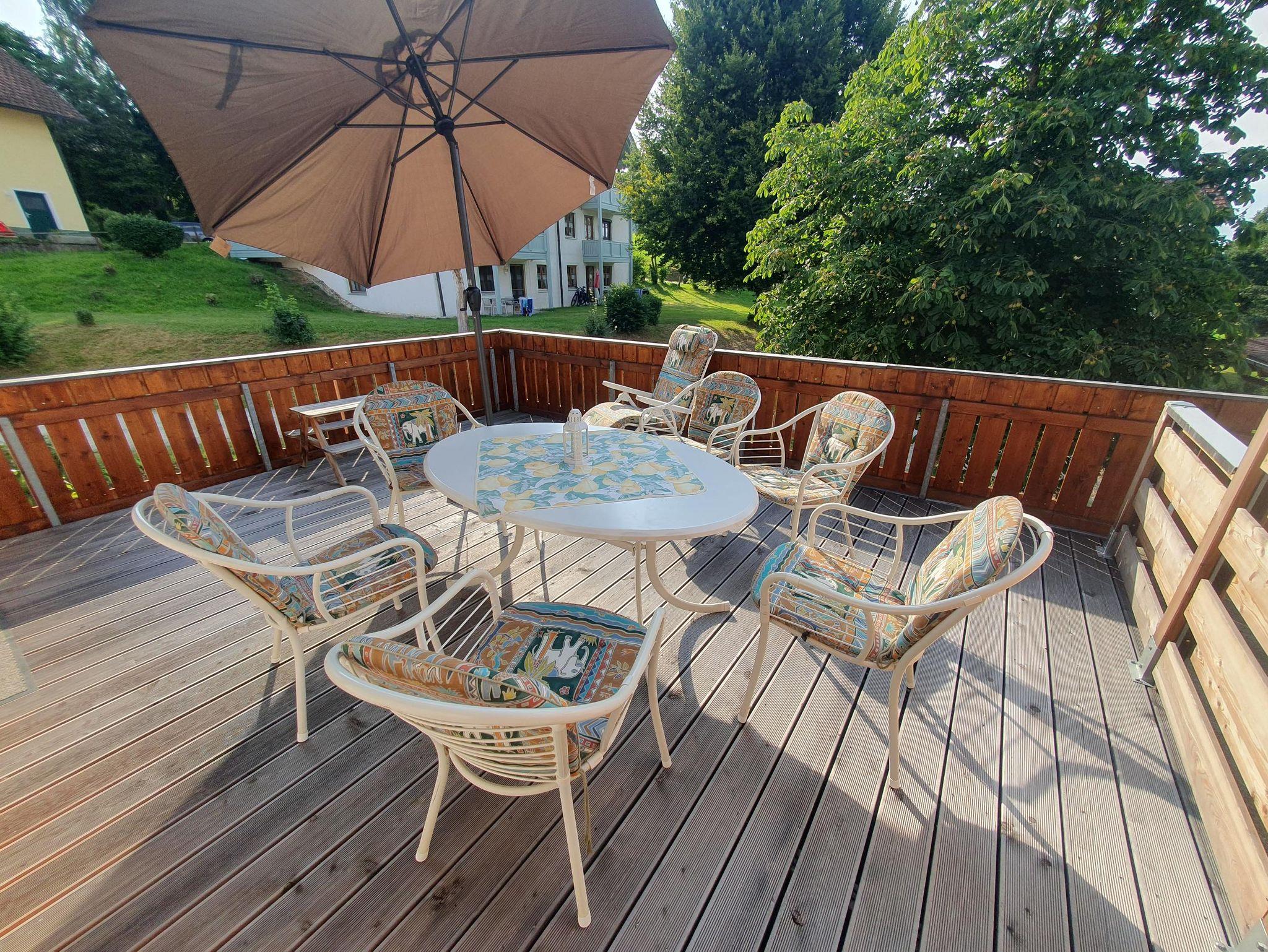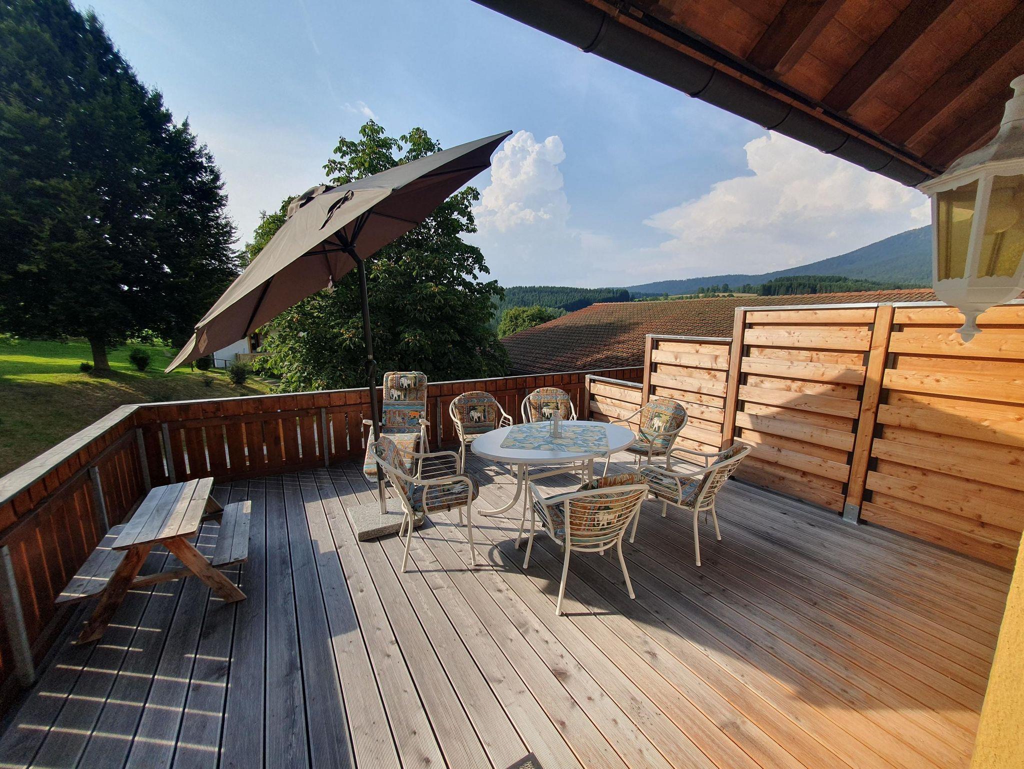 große Südwest-Terrasse mit Blick auf den Hausberg Osser, auf welcher