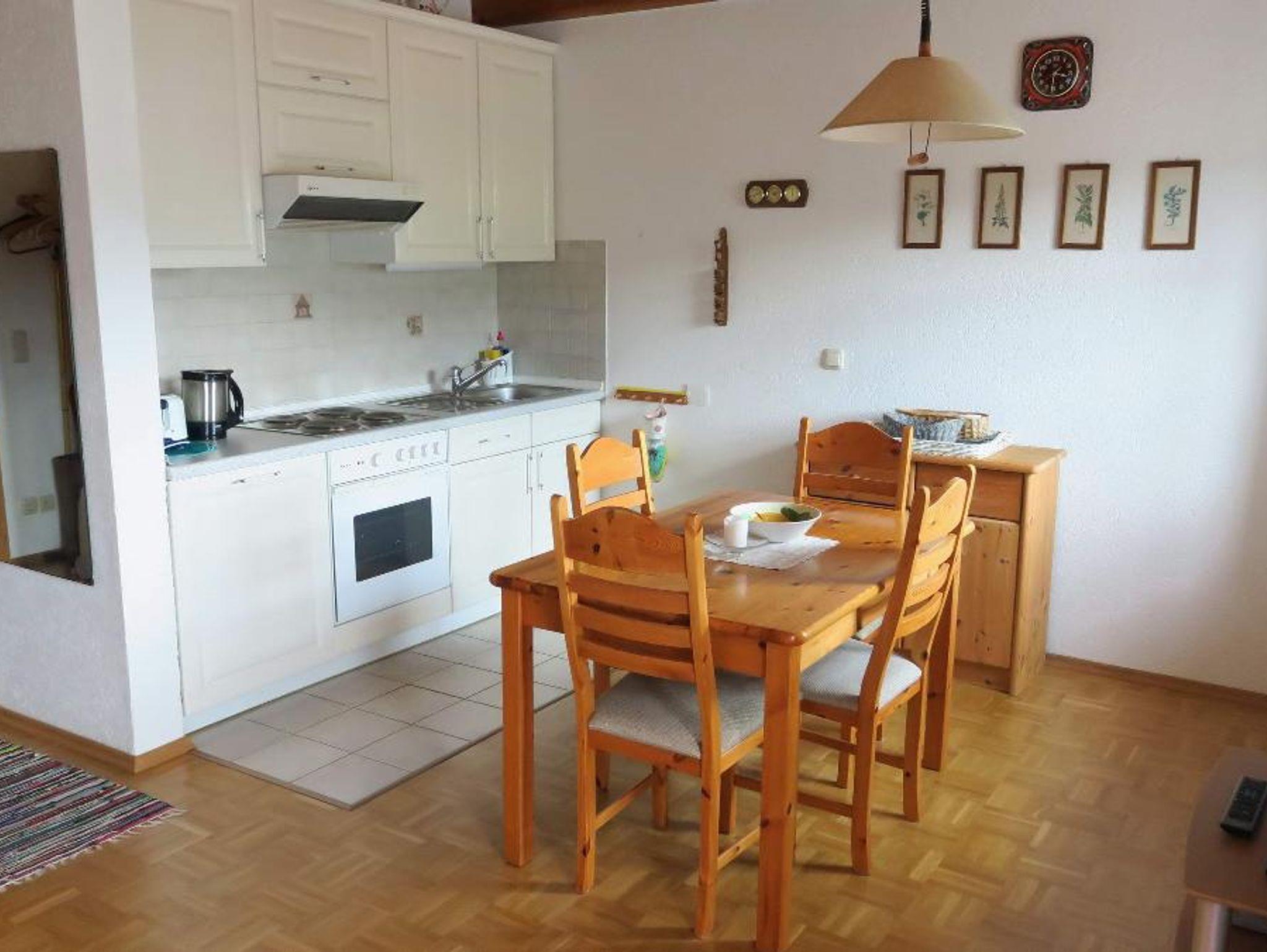 Herzlich Willkommen im Apartmenthaus Osserblick! Das Apartment Nr.2 befindet sich im Erdgeschoss und bietet neben einer großen Terrasse einen herrlichen Bergblick auf den Osser. Es ist für 2-3 Personen geeignet. Das Apartment ist 40 qm groß und verfügt über einen durch Raumteiler abgetrennten Schlafbereich mit einem Doppelbett (180 x 200 cm) und Schränken. Das Wohn/Esszimmer ist mit einem ausziehbaren Schlafsofa, zwei Sesseln und einem Flat-TV ausgestattet. Der Essbereich mit Platz für 4 Personen befindet sich neben der Küchenzeile. Hier sind ein Vierplattenkochfeld mit Backofen, Kühlschrank, Kaffeemaschine, Wasserkocher und Toaster vorhanden. Das Badezimmer verfügt über eine Badewanne und WC. Neben dem Haus befindet sich ein kleiner Kinderspielplatz mit Schaukeln und einem Sandkasten. Vor dem Haus steht ein Stellplatz für Ihren Wagen bereit. Das W-LAN können Sie kostenfrei benutzen. Die gemeinschaftlich genutzte Sauna im Haus kann gegen Gebühr genutzt werden.