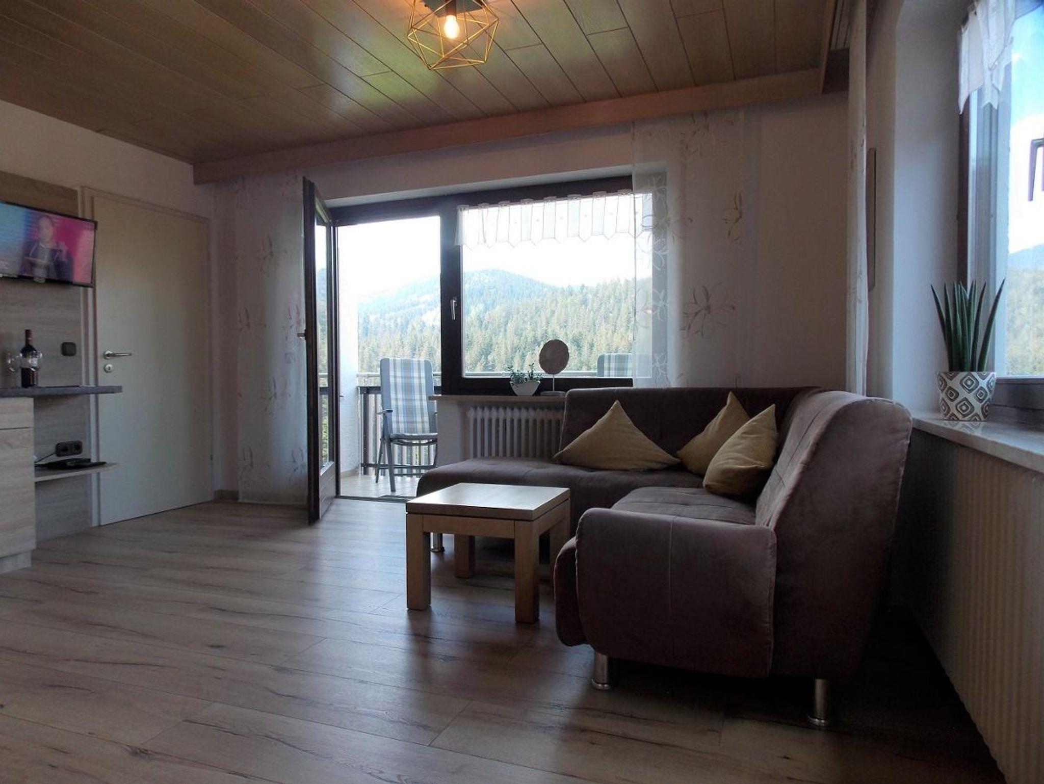 Ferienwohnung Enzian 55qm Sie bietet Platz für 2-3 Personen, Schlafzimmer ist mit einem Doppelbett und1,40 * 2,00 m Schlafcouch ausgestattet, Bad mit Dusche und WC die Wohnung verfügt außerdem über einen Wohnraum mit Flachbild TV. Die Küche ist ausgestattet mit einer Spülmaschine, Backofen, Kaffeemaschine, Kühlschrank, Mikrowelle, Toaster. Die Wohnung besitzt zudem einen möblierten Südbalkon. Endreinigung, Parkplatz und WLAN sind im Preis enthalten. Auf dem schönen Balkon können Sie den freien Blick auf die umliegenden Bayerwaldberge genießen.