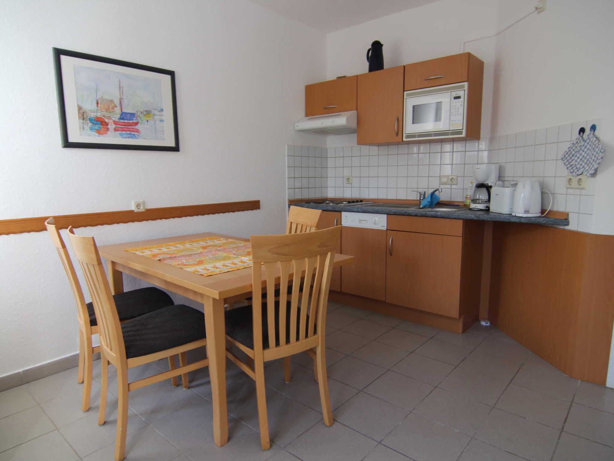 Die 52 Quadratmeter grosse Ferienwohnung ist ausgestattet mit 2 Schlafzimmern (insgesamt 4 Betten), einer offenen Küche und einem Bad mit Badewanne.