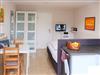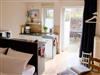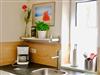 Wohn-/Schlafraum mit hochwertigem Hotelboxspringbett mit Bandscheiben-Federkernmatratze (1,60 m x 2 m), Kleiderschrank, Kommode, Spiegel, Essecke, LCD-Fernseher (SAT-TV/Radio), komplett ausgestattete Küchenzeile mit 2-Plattenkochfeld, Mikrowelle mit Grill- und Heißluftfunktion, Geschirrspülmaschine und Kühlschrank mit Eisfach, Bad mit Dusche, WC, Handtuchheizung, Haartrockner und Kosmetikspiegel, Ost-Terrasse mit modernem Mobiliar