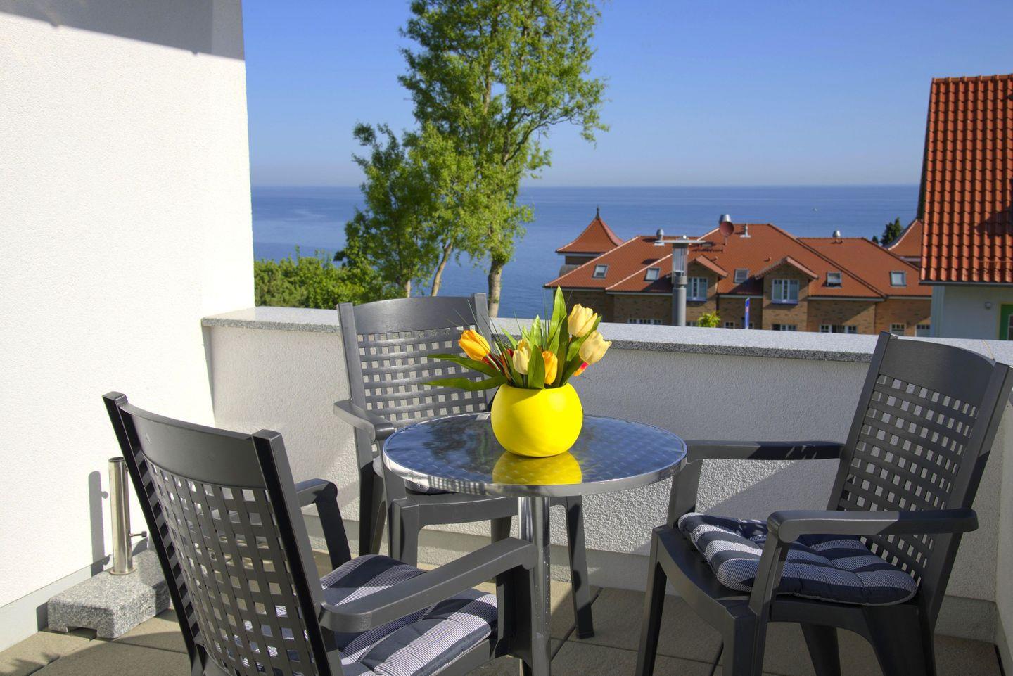 Genießen Sie entspannte Tage mit Meerblick auf der Dachterrasse im Haus Ostseeblick 1 in Lohme auf Rügen.
