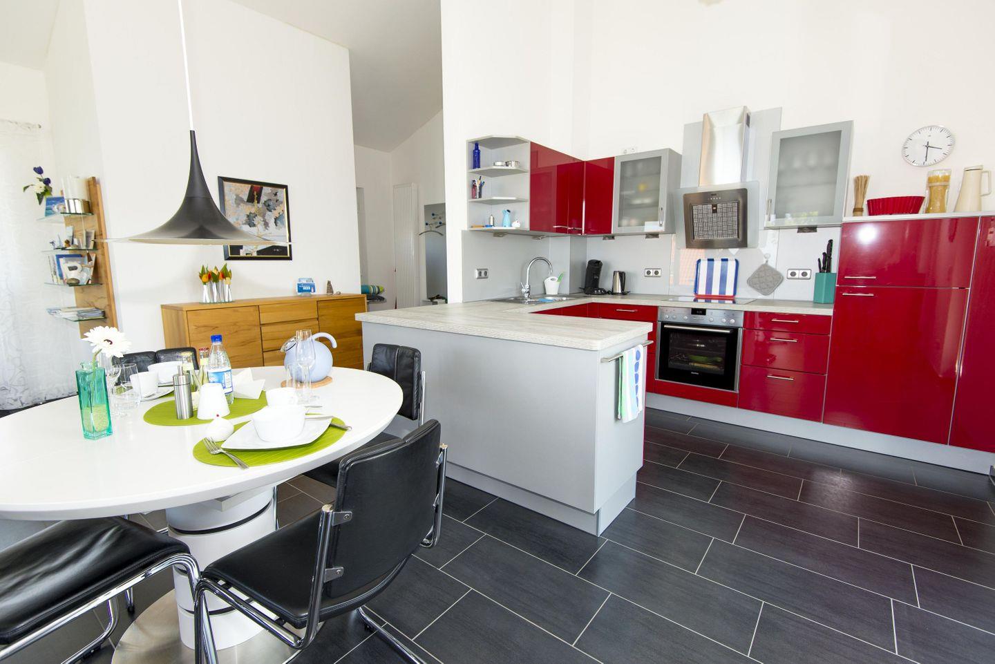 KÜCHE// offene Küche, Essbereich, Ceranfeld, Spülmaschine, Kühlschrank mit Gefrierfach, Backofen, Toaster, Wasserkocher, Kaffeemaschine, reichlich Besteck, Geschirr und Küchenutensilien ++
