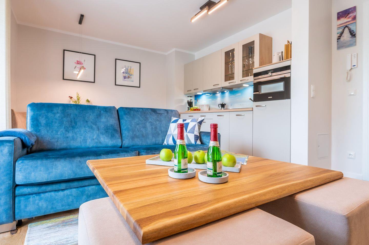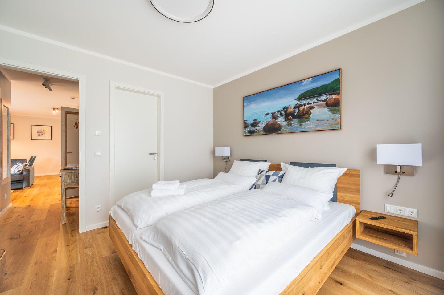 Unter dem Motto Sand & Meer begrüßt Sie diese stilvolle Erdgeschoß Ferienwohnung in der 2022 neu erstellten Villa Schlossblick am Golfplatz Schloss Ranzow und direkt am bekannten UNESCO Nationalpark der Insel Rügen. Unter der Prämisse und Einhaltung der umgebenen Natur wurde sie dieser getreu, aber in höchster Qualität, im maritimen Flair eingerichtet. Zarte Blau- und warme Sandtöne sowie maßangefertigtes Holz Mobiliar sorgen für entspannte Atmosphäre - Urlaubsatmosphäre.