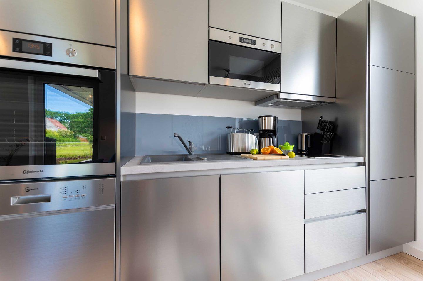 Sie betreten Ihre HERZZEIT barrierefrei im Erdgeschoss einer eleganten, lichtdurchfluteten Bauhausvilla. Mit großzügigen 62 qm ist es geeignet für 2 Personen plus Kleinkind und auch ihr vierbeiniger Freund ist sehr willkommen. Erfreuen Sie sich an der hochwertigen Ausstattung des Interieurs mit der Marke Riviera Maison. Die Wände schmücken ausgewählte Original-Kunstwerke befreundeter Künstler. Der gemütliche Wohnbereich mit integrierter Küchenzeile, Geschirrspüler, Nespresso-Kaffeemaschine und einem Waschtrockner lässt keine Wünsche offen. Im kuscheligen Schlafzimmer mit eigenem Ankleideraum verwöhnt Sie ein herrlich bequemes Boxspringbett. Besonders lieben werden Sie das großzügiges Wellnessbad mit Badewanne und barrierefreier Regendusche. Zwei Großbildfernseher im Wohn- und Schlafbereich, kostenloses Highspeed Internet und eine kleine Musikanlage machen die Ausstattung komplett. In den sonnigen Garten gelangen Sie, ebenfalls barrierefrei, über die großzügige, regen- und windgeschützte Terrasse mit Strandkorb, Lounge-Möbeln und Elektrogrill.