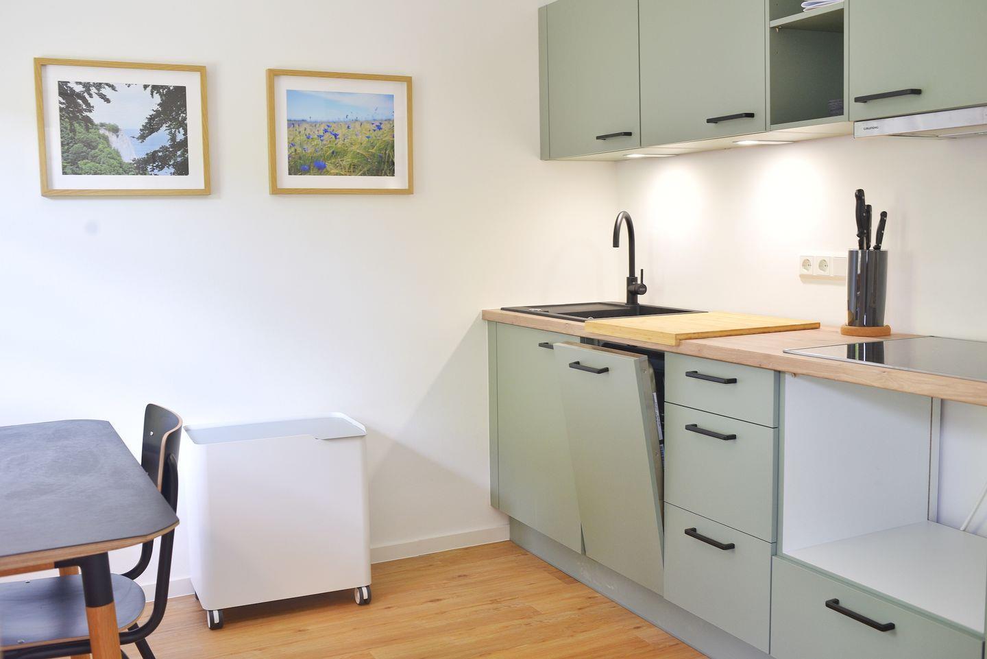 Die ebenerdige Ferienwohnung bietet ausreichend Platz für 3 Personen und beinhaltet 1 Schlafzimmer mit Doppelbett, 1 Küche, 1 Wohnzimmer mit Schlafcouch und 1 Badezimmer. Die Wohnung verfügt über ca. 45qm Wohnfläche und zugehöriger Terrasse. WLAN ist vorhanden. Zur Wohnung gehört ein Pkw-Stellplatz und es gibt überdachte Fahrradunterstellmöglichkeiten. Das Reetdachhaus ist von einem großzügig angelegten Garten umgeben und bietet direkten Zugang zum als Naturschutzgebiet ausgewiesenen Buchenwald. Hier finden Sie Ruhe und Entspannung für einen erholsamen Urlaub.