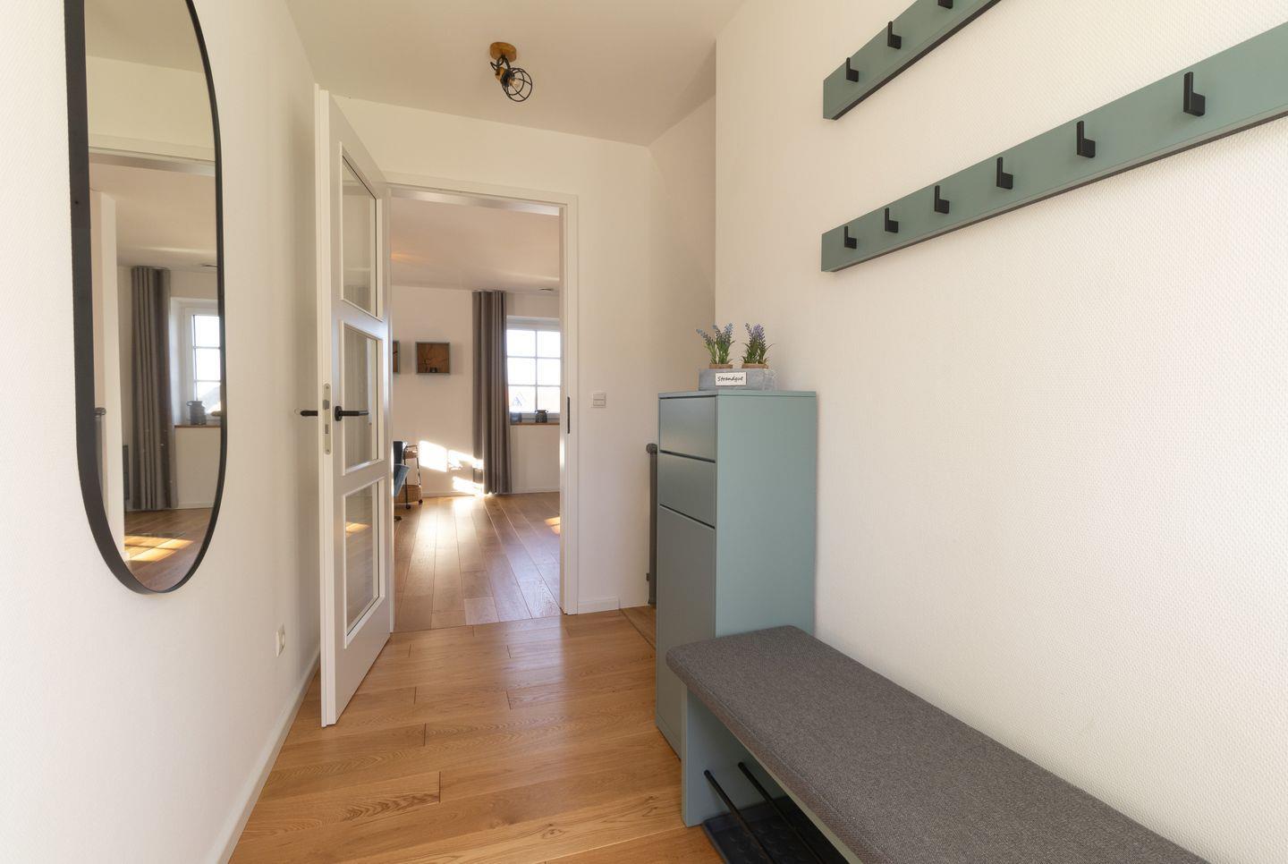 Für kleine Gäste stehen ein Reisebett, Hochstuhl, Spiele und Bücher bereit. Im Haus gibt es außerdem zwei separate WCs (EG & Souterrain), Waschmaschine, Trockner sowie ausreichend Stauraum.