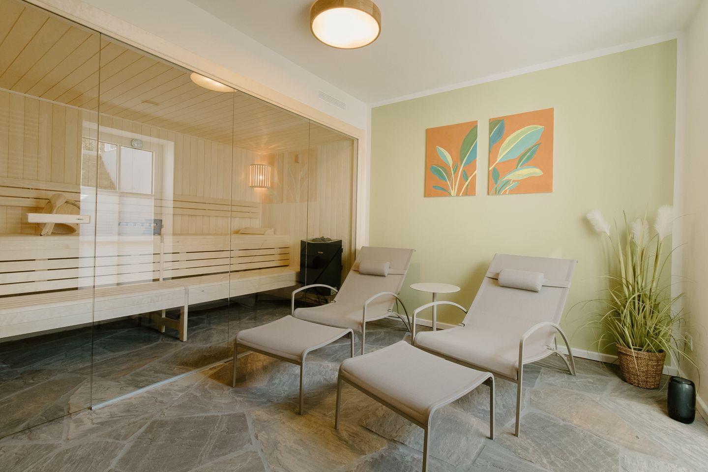 Im Souterrain erwartet dich eine exklusive Saunasuite mit Dusche, separatem WC und direktem Zugang in den Garten. Hier genießt du pure Erholung im privaten Whirlpool mit herrlichem Ostseeblick – ideal nach einer langen Wanderung oder einem aktiven Tag an der frischen Luft. Ein geschützter Lichthof sorgt dabei für viel Tageslicht und angenehme Privatsphäre.