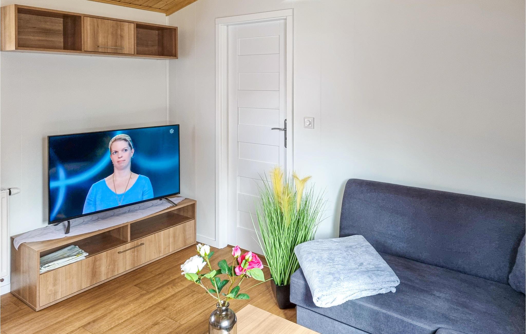 Auf einem Campingplatz, umgeben von Wald, heißt Sie dieses komfortable Mobilheim willkommen. Die schöne Unterkunft bietet Ihnen und Ihrer Familie das ideale zuhause und ist auf kompakten Raum voll ausgestattet. Genießen Sie Ihre Urlaubsmahlzeiten auf der hübschen Holzterrasse, lassen die Sonne auf Ihr Haupt scheinen und beobachten das Gesehen auf dem Campingplatz. Sollten Sie in einer größeren Gruppe verreisen, können Sie mehrere Unterkünfte in dieser Anlage buchen.