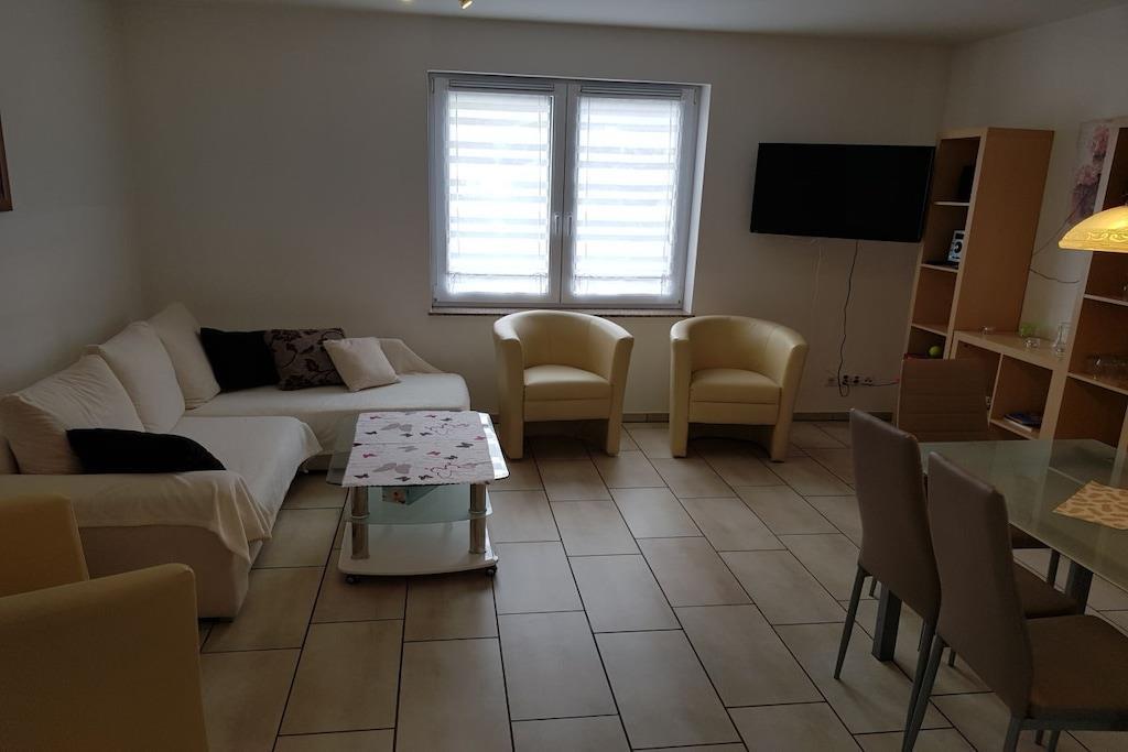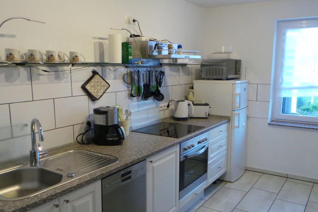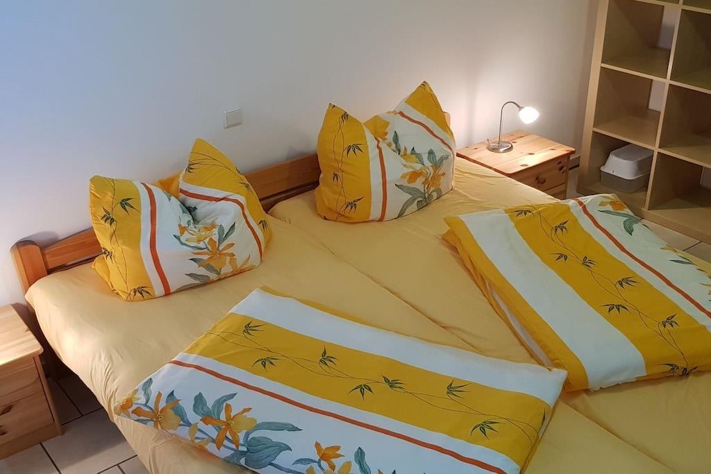 Im Jahre 2014 neu erstellte 3 Zimmer- Ferienwohnung als Reihenendhaus (Dachgeschoss nicht ausgebaut) mit ca.65m² Wohnfläche, in einer kernsanierten Bauernhaushälfte, mit 2 Schlafzimmern. Ein Schlafzimmer mit Doppelbett, das 2. mit 2 Etagenbetten. Ein Bad mit ebenerdiger Dusche, eine Waschmaschine, sowie eine voll ausgestattete Küche (löffelfertig) stehen Ihnen ebenfalls zur Verfügung. Eine neue Heiztherme mit neuer Warmwasserversorgung und Wasserenthärtungsanlage wurde im Herbst 2023 neu installiert