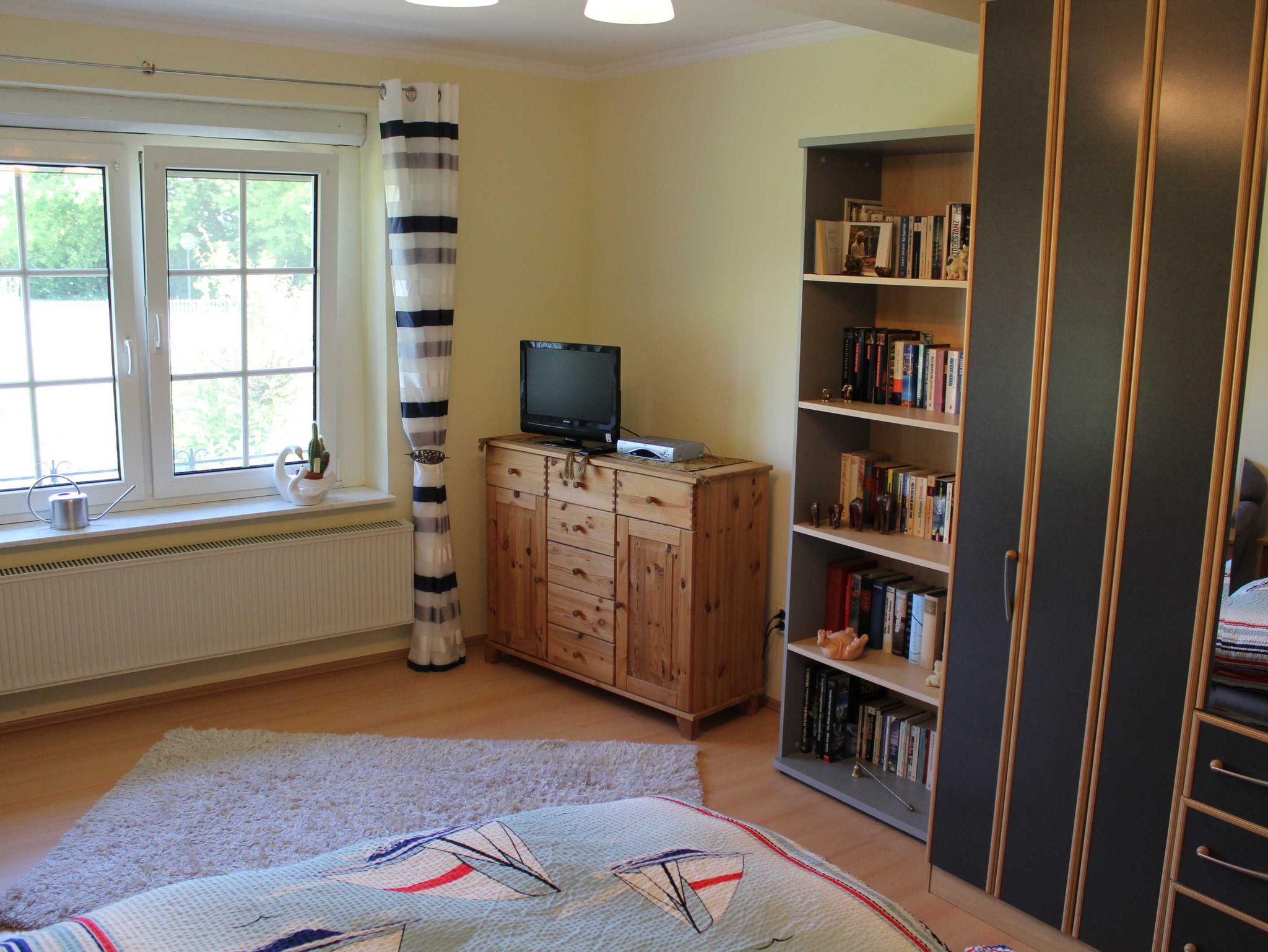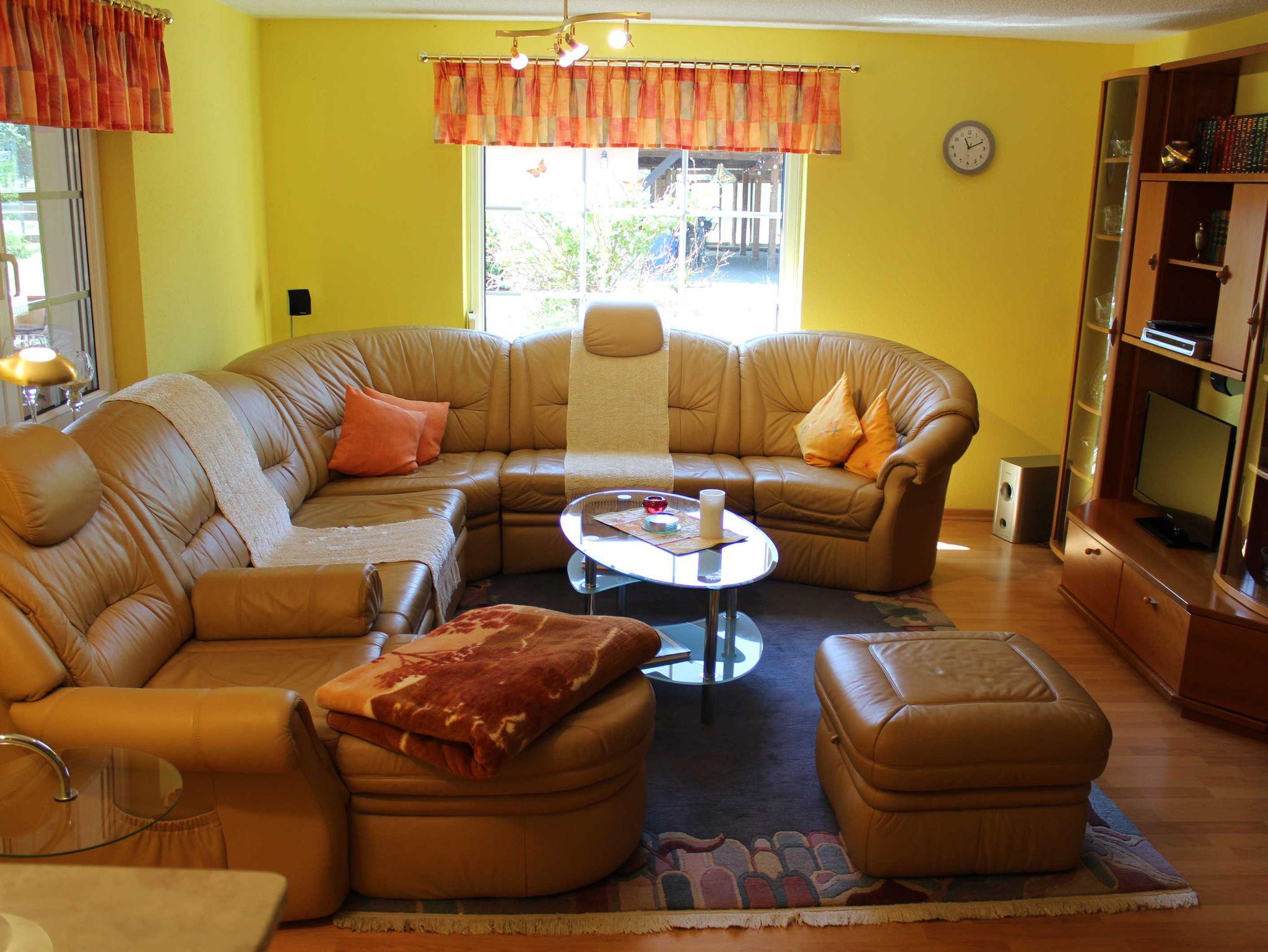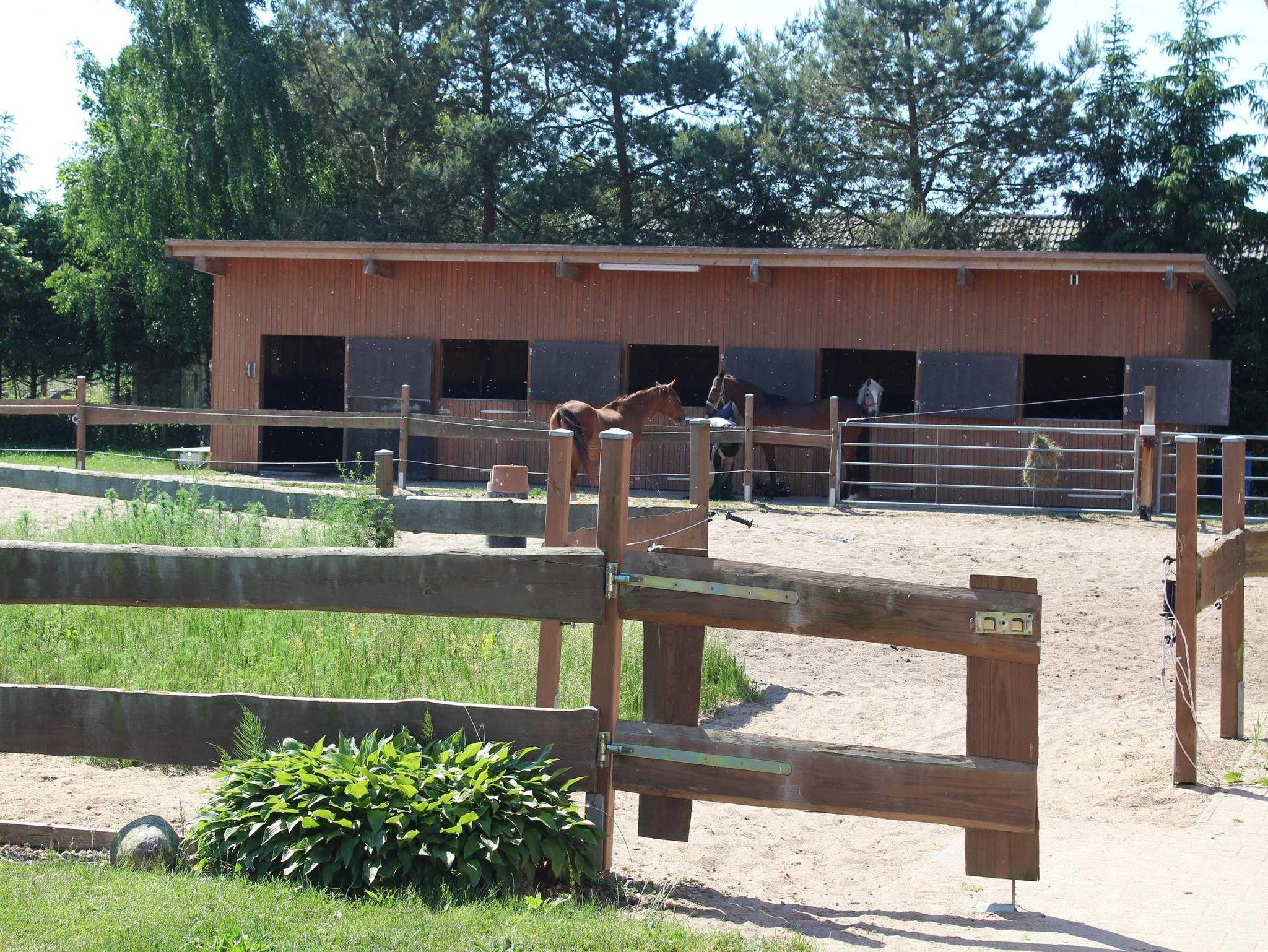 Ein Wohnzimmer mit offener komfortabler Küche, 2 Schlafzimmer mit jeweils einem Doppelbett befinden sich in der unteren Etage des Hauses. Ein weiteres kleines Schlafzimmer mit einem Einzelbett ist im Obergeschoss und über eine Wendeltreppe erreichbar. Ein Badezimmer mit Dusche/WC und einer Badewanne steht Ihnen zur Verfügung. Das Haus bietet 6 Personen Platz. Auf der überdachten teilverglasten Terrasse können Sie sich nach einem erlebnisreichen Urlaubstag entspannen. Zum Haus gehören 2 Pferde 2 Katzen. Anreise ab 16.00 Uhr, Abreise bis 10.00 Uhr.