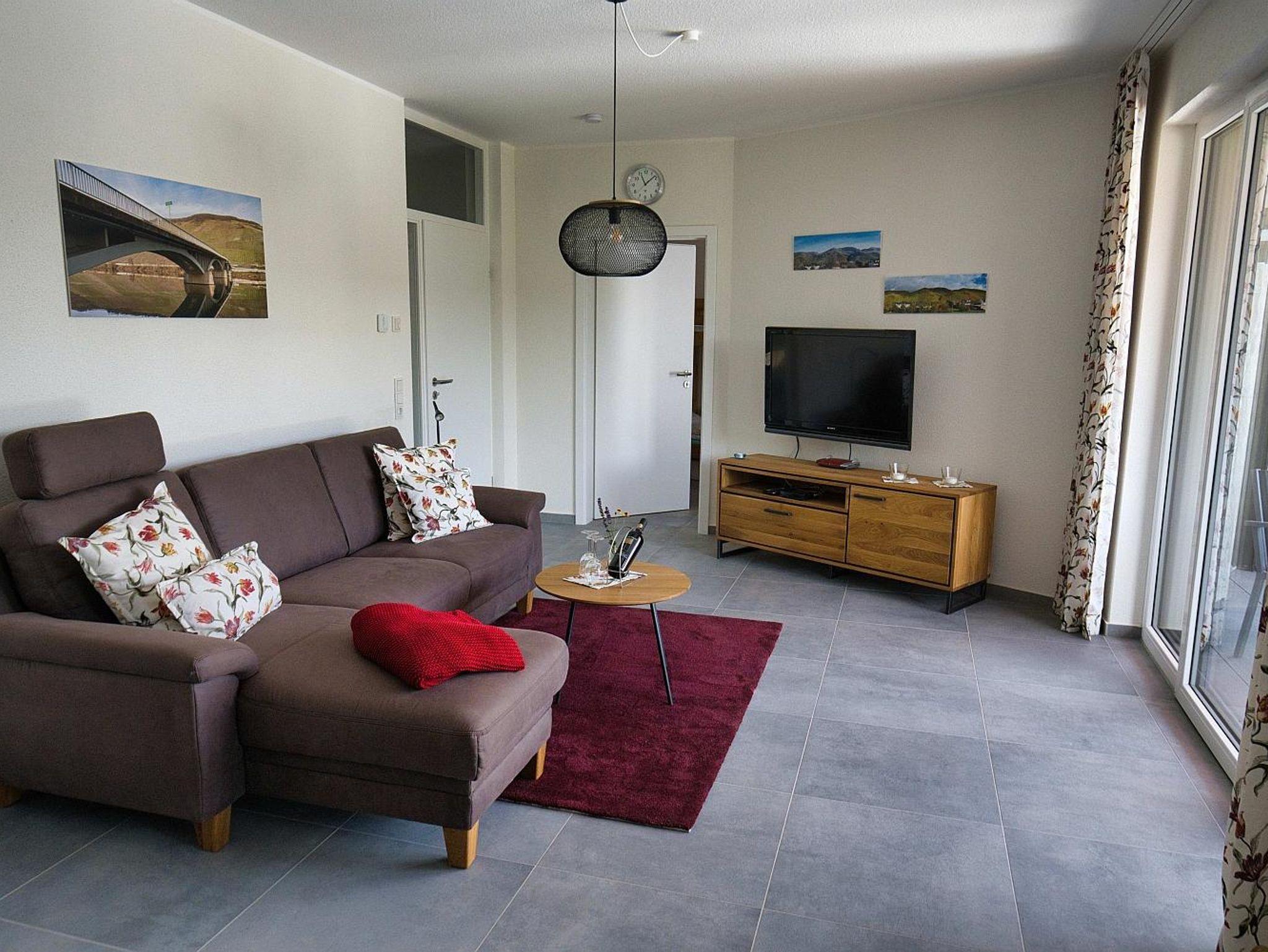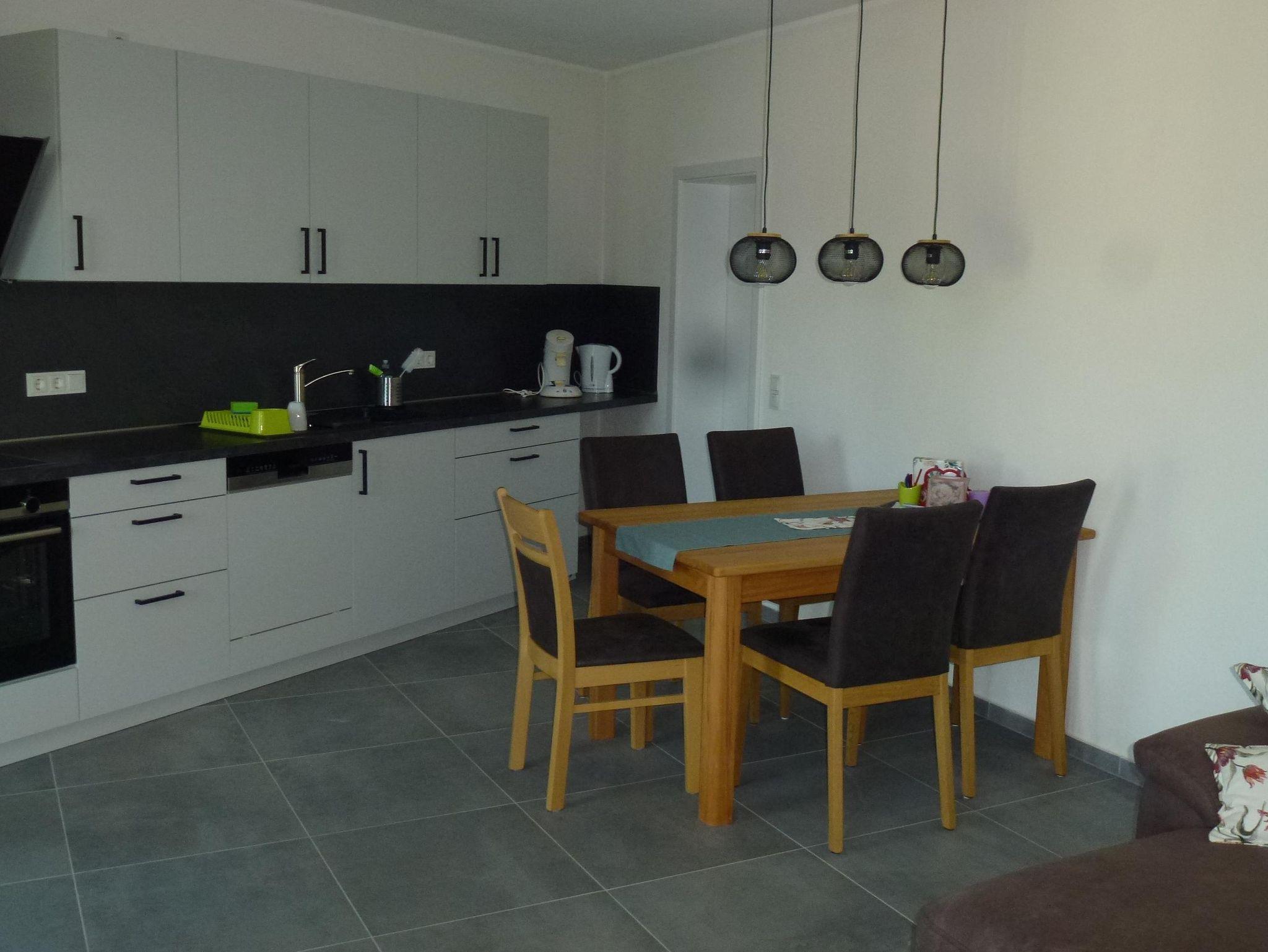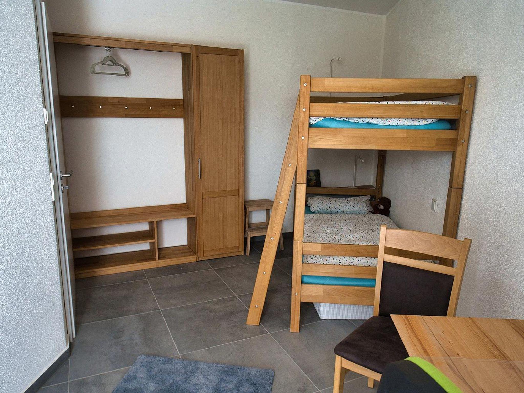 Unsere neue, modern eingerichtete Ferienwohnung liegt im 1. OG und bietet Platz für 4 Personen. Die Wohnung verfügt über eine Küche mit Wohnraum, 1 Doppelzschlafzimmer (Bett 180 x 200) und einem Schlafzimmer mit Etagenbett, Bad mit Dusche, SAT-TV und Balkon.