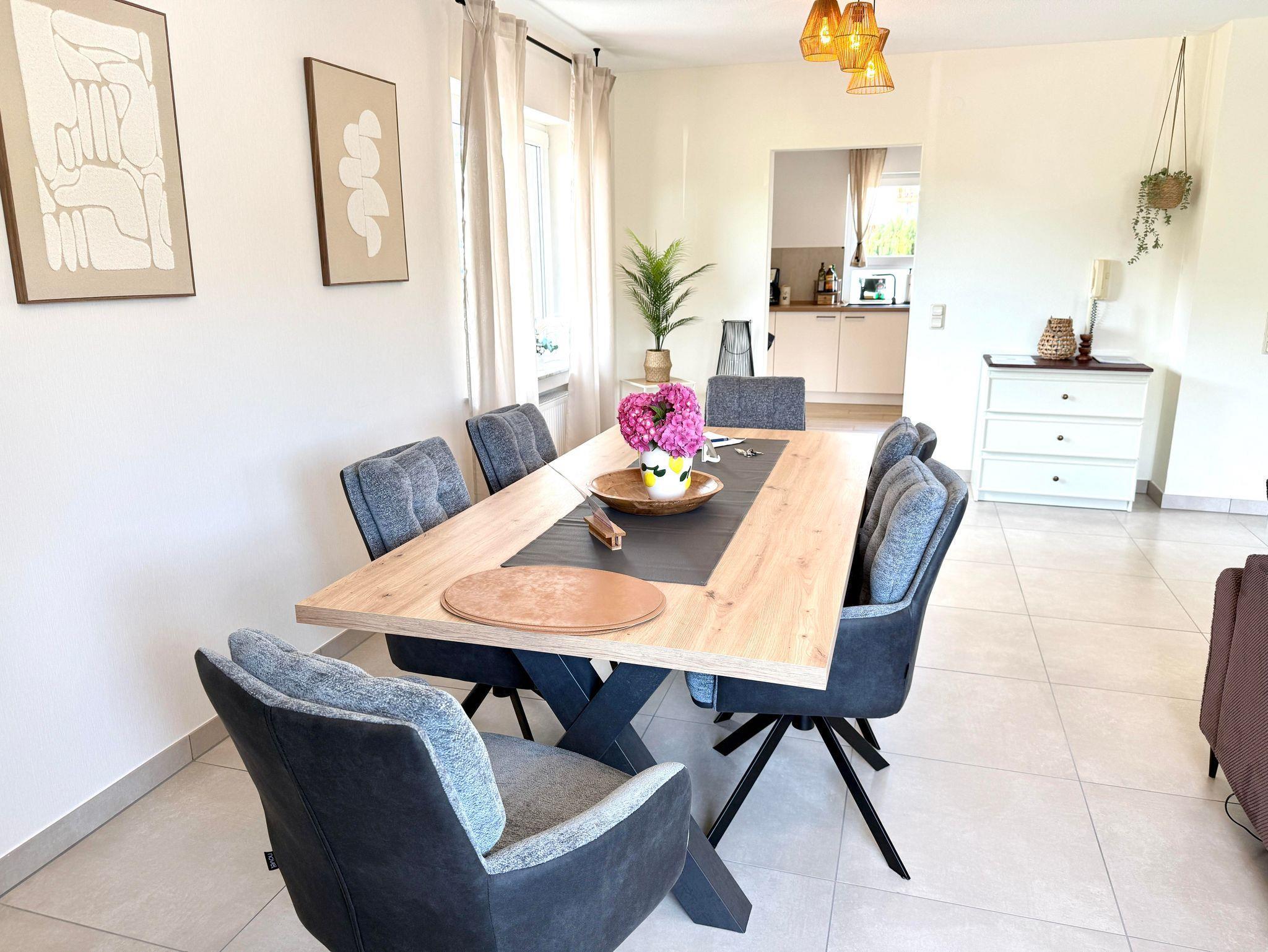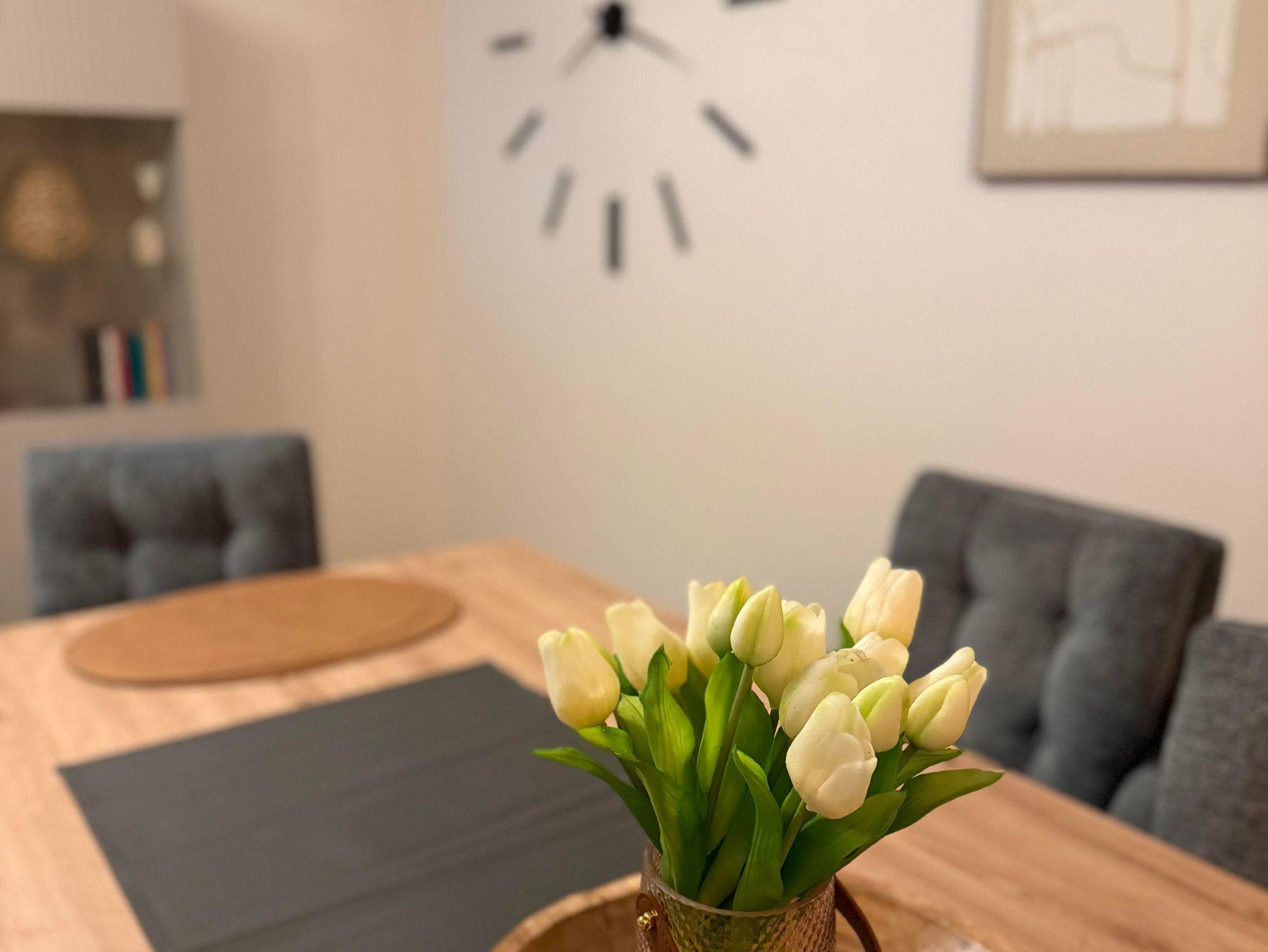 Das Haus ist modern eingerichtet und bietet alles, was man für einen angenehmen Aufenthalt braucht: WLAN, SMART-TV, einen Balkon, auf dem man die frische Luft genießen kann, sowie eine super ausgestattete Küche. Für die Kleinsten stehen optional ein Kinderhochstuhl und ein Kinderbett zur Verfügung.
